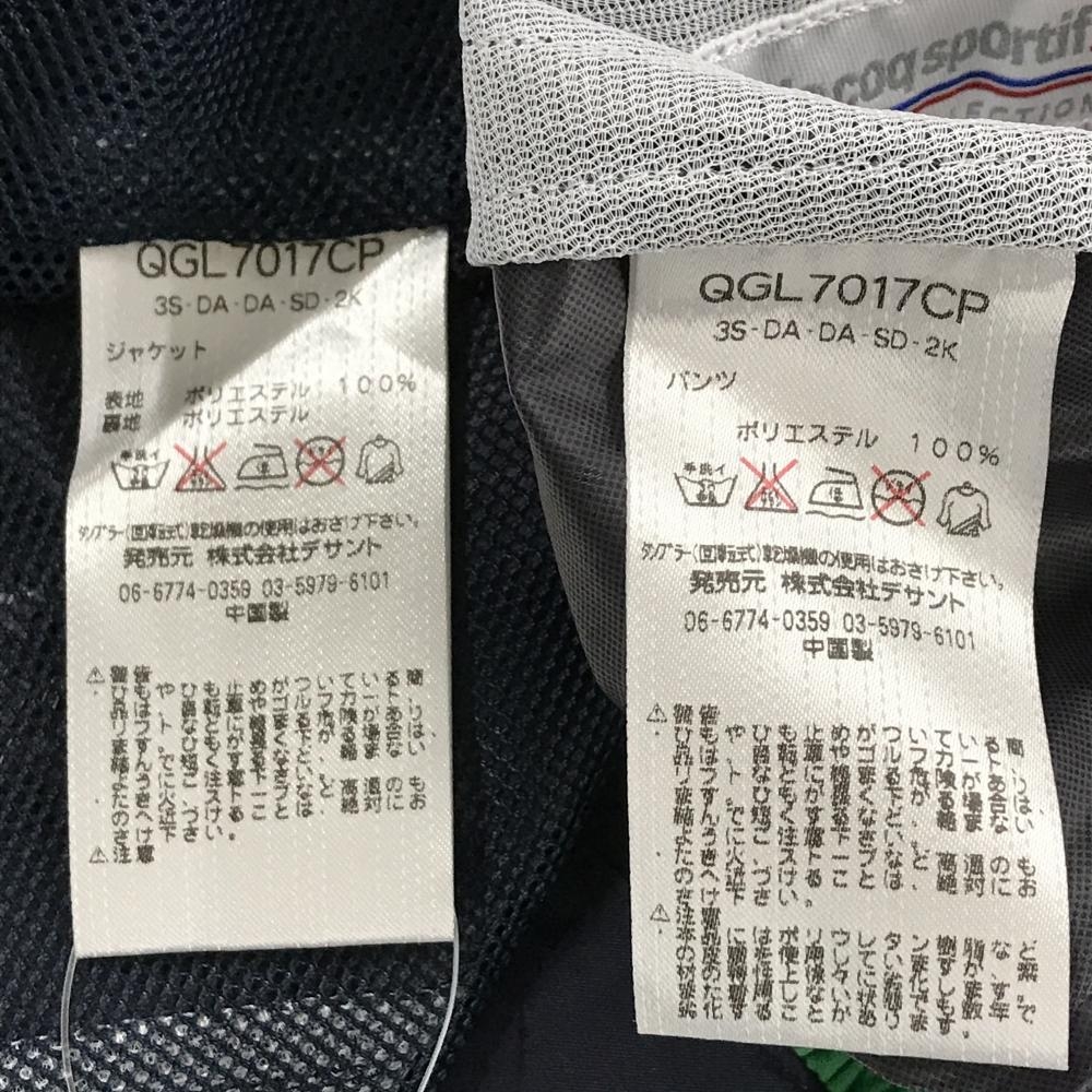 【美品】ルコックゴルフ レインウェア(2WAYジャケット×パンツ) ネイビー×グリーン 裏メッシュ レディース M ゴルフウェア le coq sportif