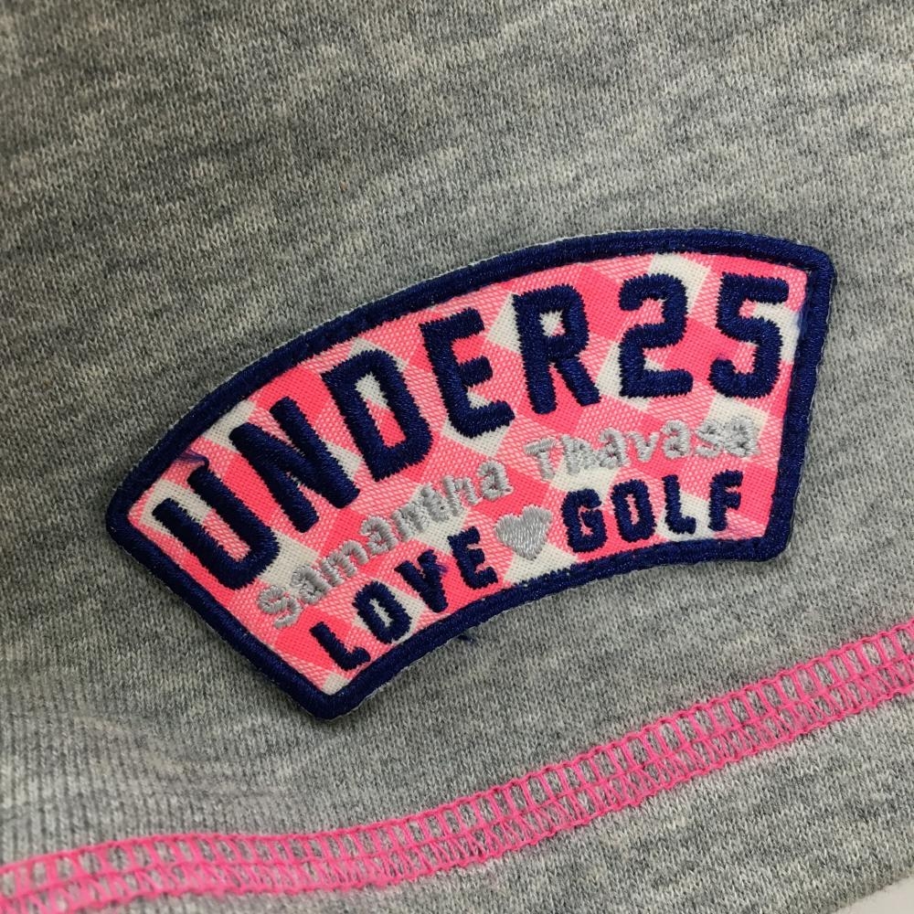 サマンサタバサUNDER25 スウェットスカート 杢グレー×ピンク ベア刺しゅう ウエスト調節紐 レディース M ゴルフウェア Samantha Thavasa