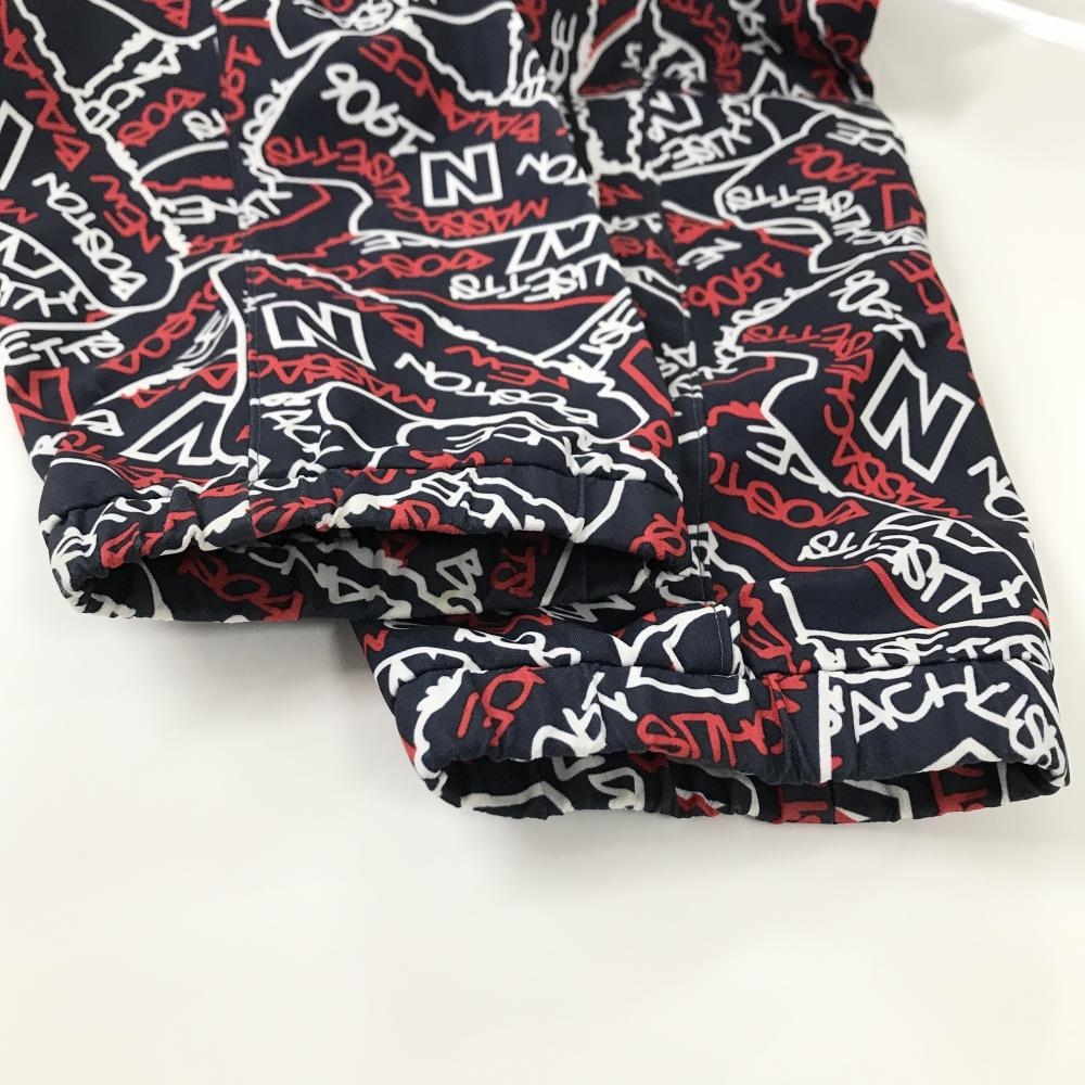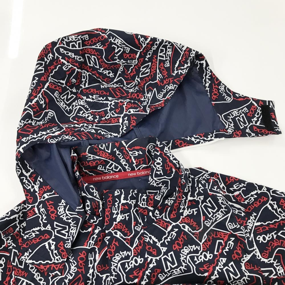 【美品】ニューバランスゴルフ 2WAYジップパーカー ネイビー×白×レッド ロゴ総柄 フード着脱可 メンズ 4(M) ゴルフウェア New Balance