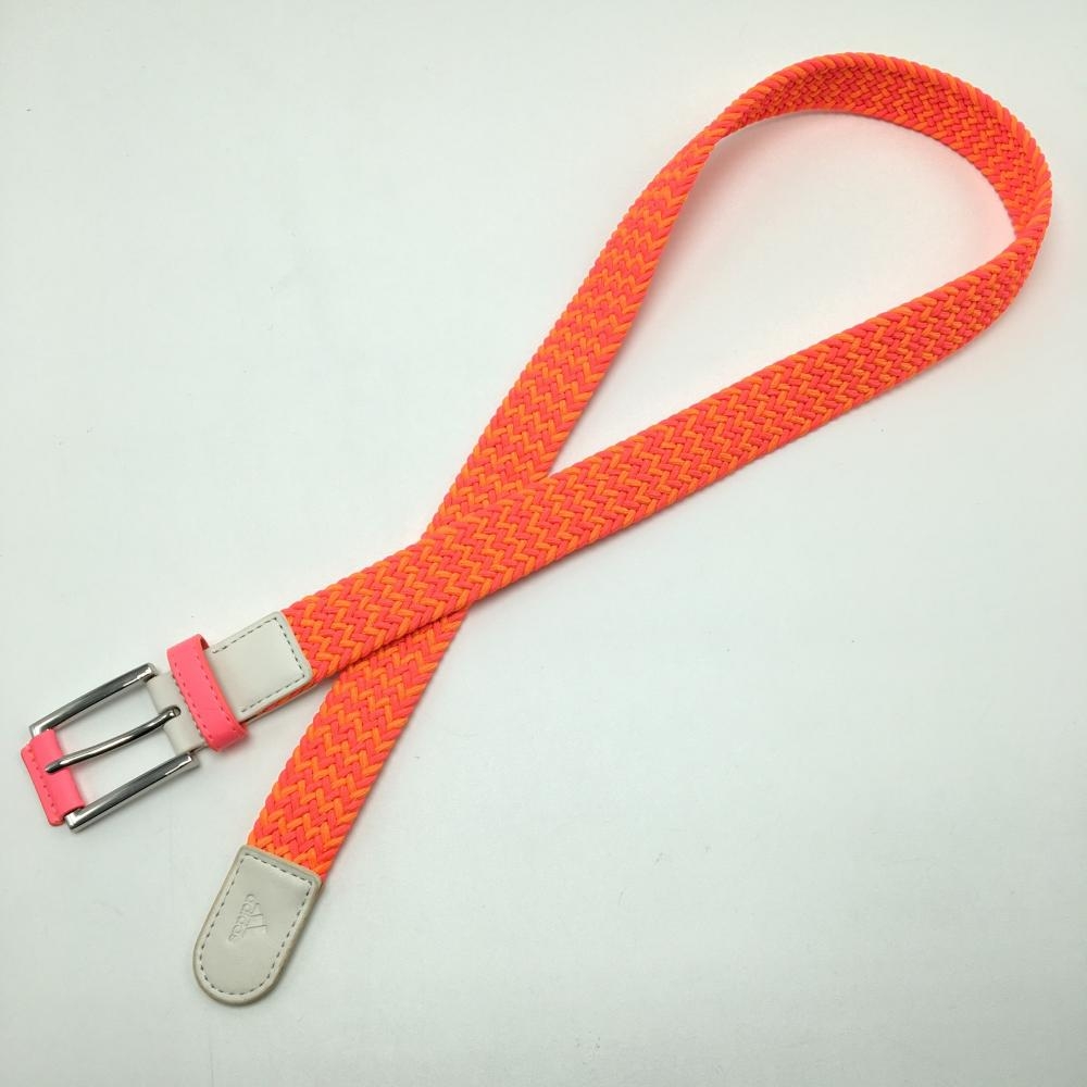 【美品】アディダス メッシュベルト ピンク×オレンジ ロゴ型押し レディース ゴルフウェア adidas