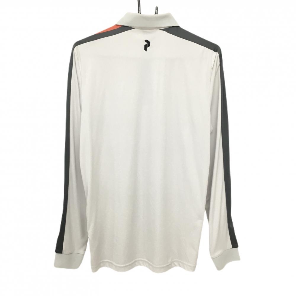 ピークパフォーマンス 長袖ポロシャツ ライトグレー×ダークグレー×レッド 袖ロゴレッド メンズ S ゴルフウェア Peak Performance