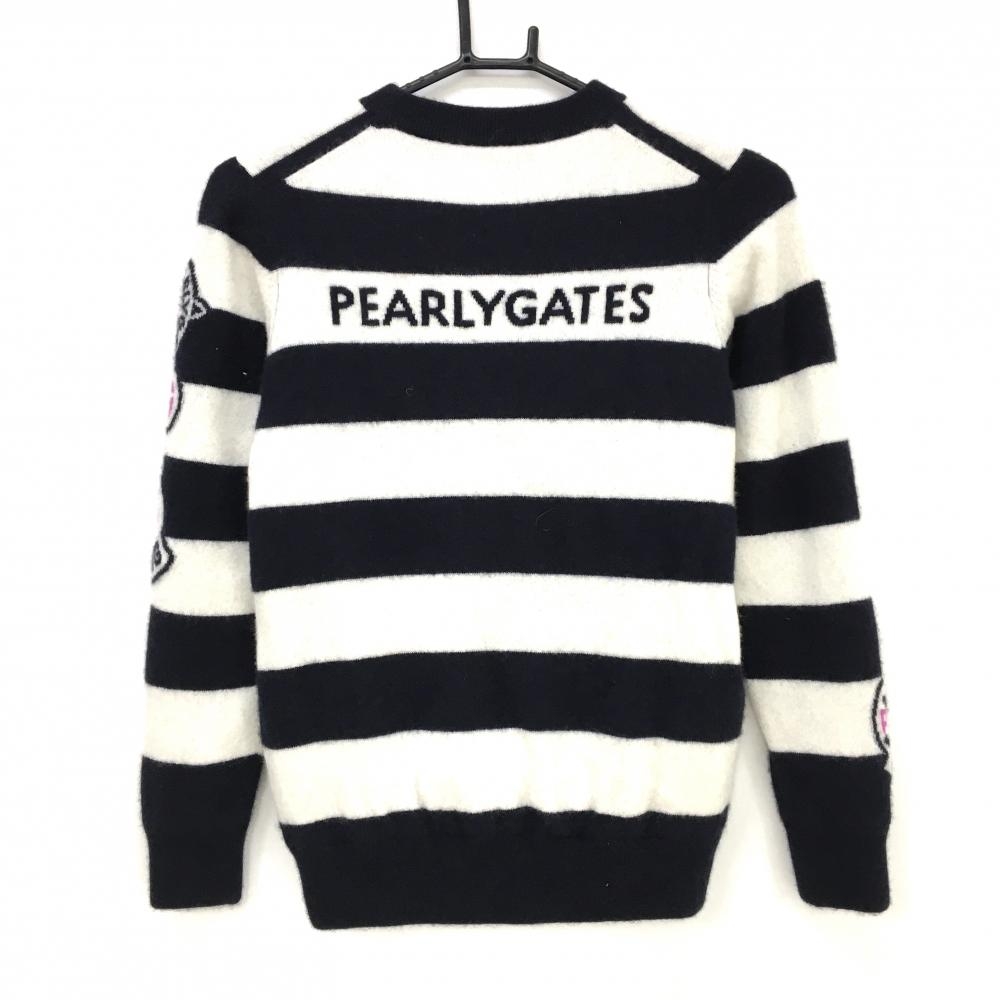 【超美品】パーリーゲイツ 裏地付セーター ネイビー×白 ボーダー カシミヤ100% ニット レディース 0(S) ゴルフウェア PEARLY GATES