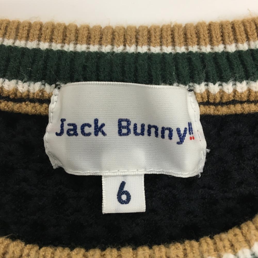 【美品】ジャックバニー セーター 黒×ブラウン×ダークグリーン 凹凸編み ニット メンズ 6(XL) ゴルフウェア Jack Bunny