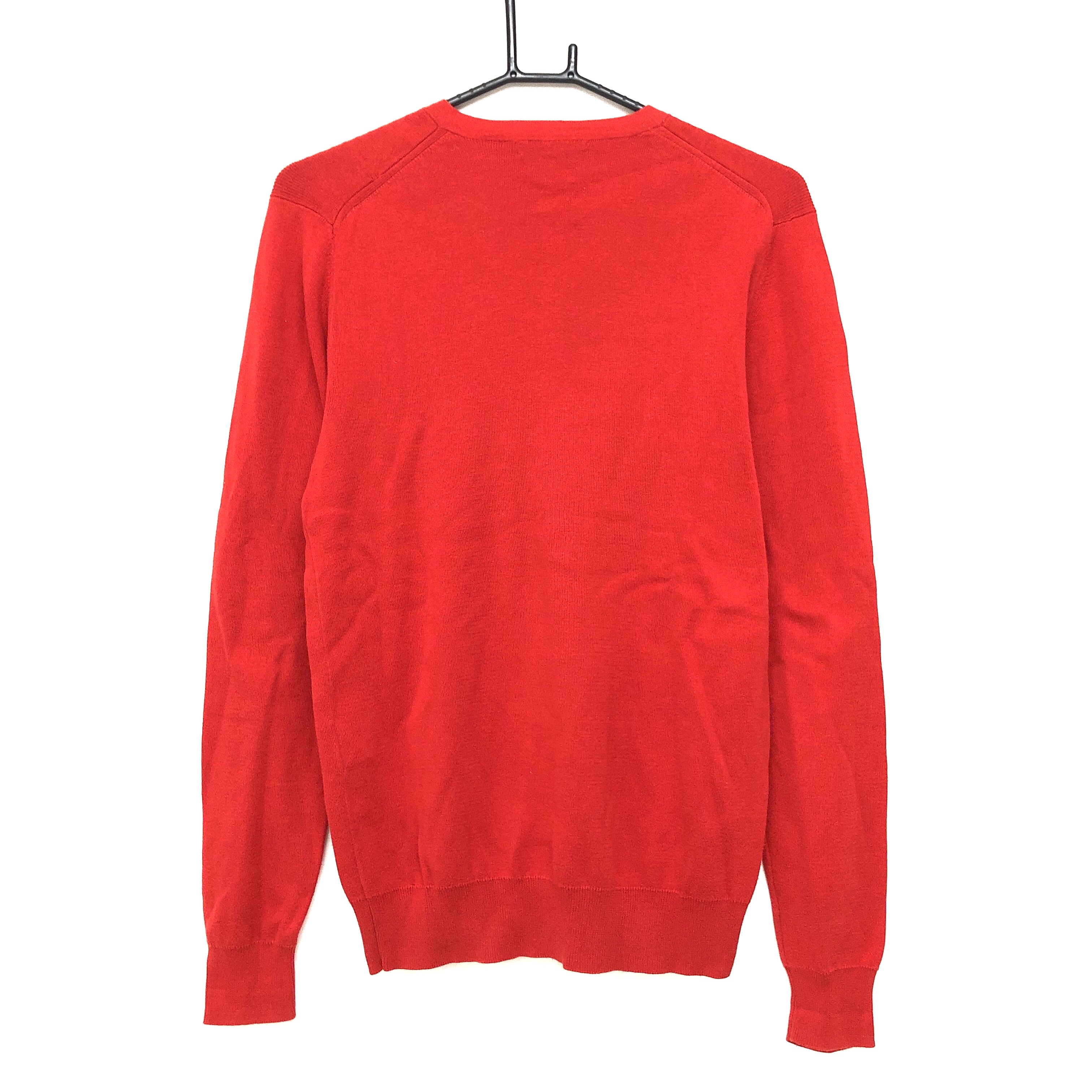 【美品】ジェイリンドバーグ セーター レッド 胸ロゴ 綿100% Vネック ニット メンズ S ゴルフウェア J.LINDEBERG