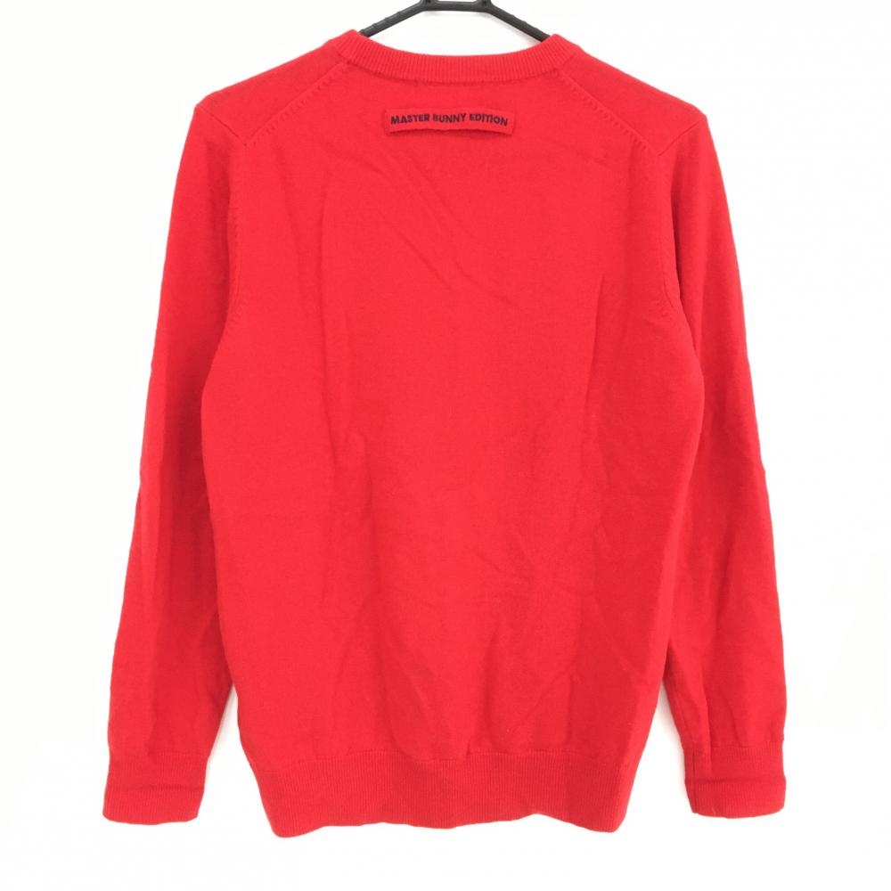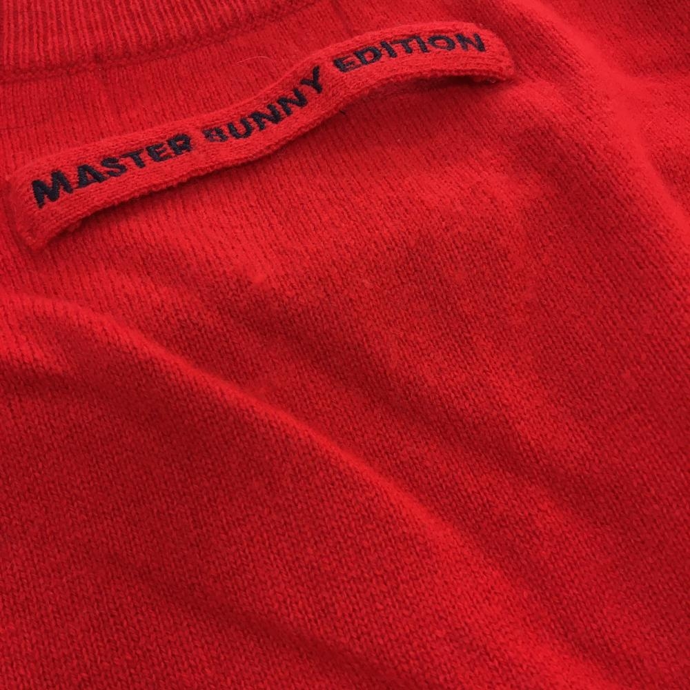 【美品】マスターバニー セーター レッド 胸ロゴ ウール・カシミヤ混 ニット メンズ 4(M) ゴルフウェア MASTER BUNNY EDITION