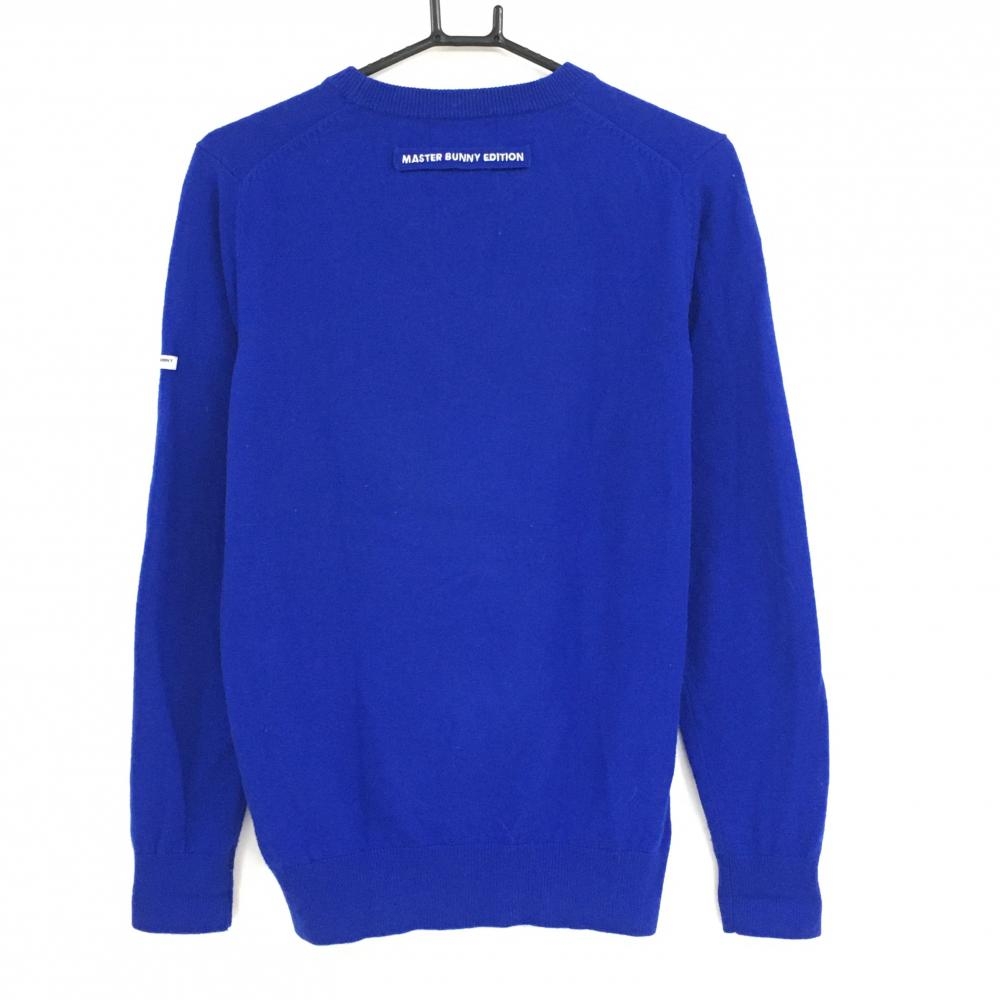 【美品】マスターバニー セーター ブルー 胸ロゴ ウール・カシミヤ混 メンズ 4 ゴルフウェア MASTER BUNNY EDITION