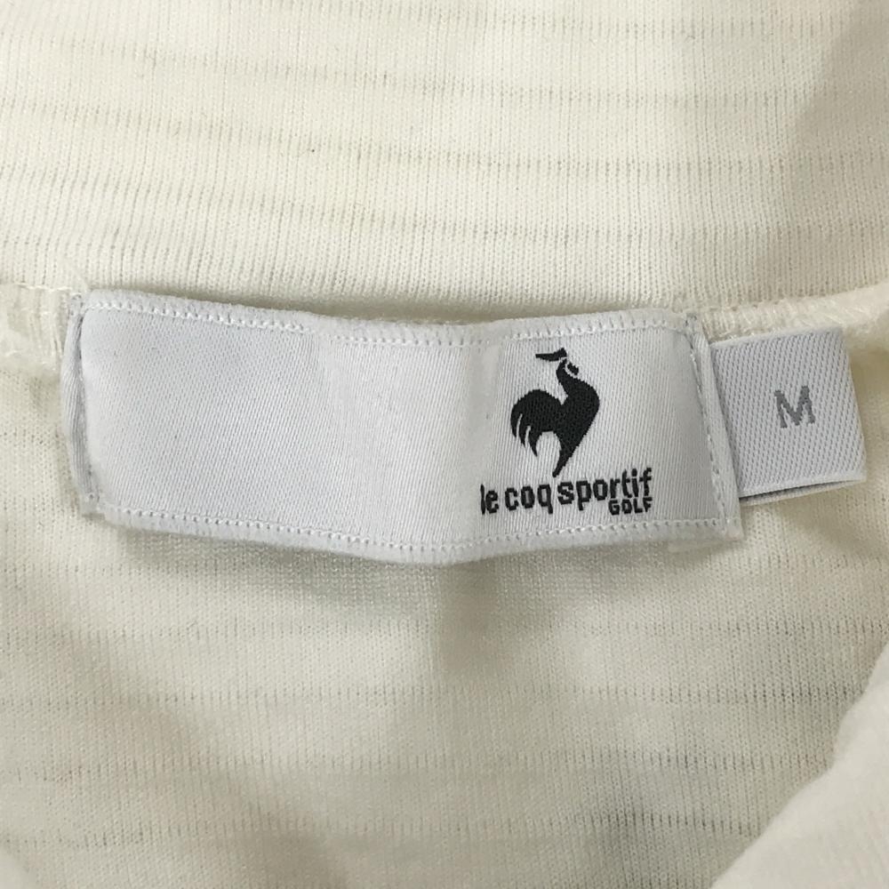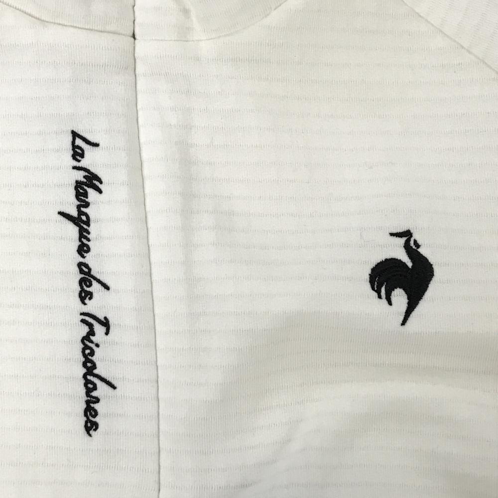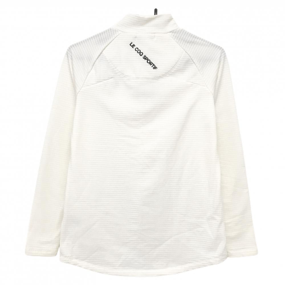 【超美品】ルコックゴルフ 長袖ハイネックシャツ 白×黒 地模様 ロゴ刺しゅう ハーフジップ レディース M ゴルフウェア le coq sportif