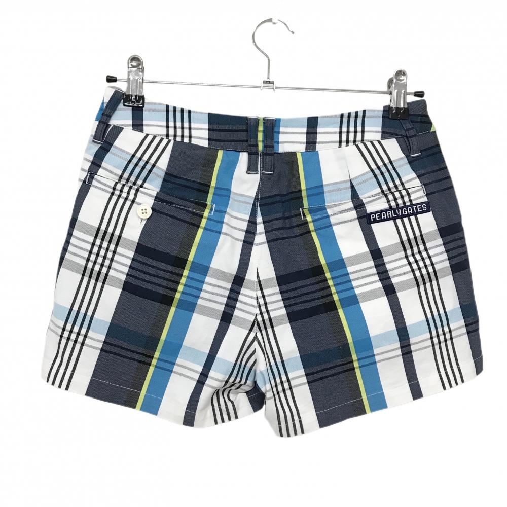 【超美品】パーリーゲイツ ショートパンツ 白×ネイビー チェック ストレッチ レディース 0(S) ゴルフウェア PEARLY GATES