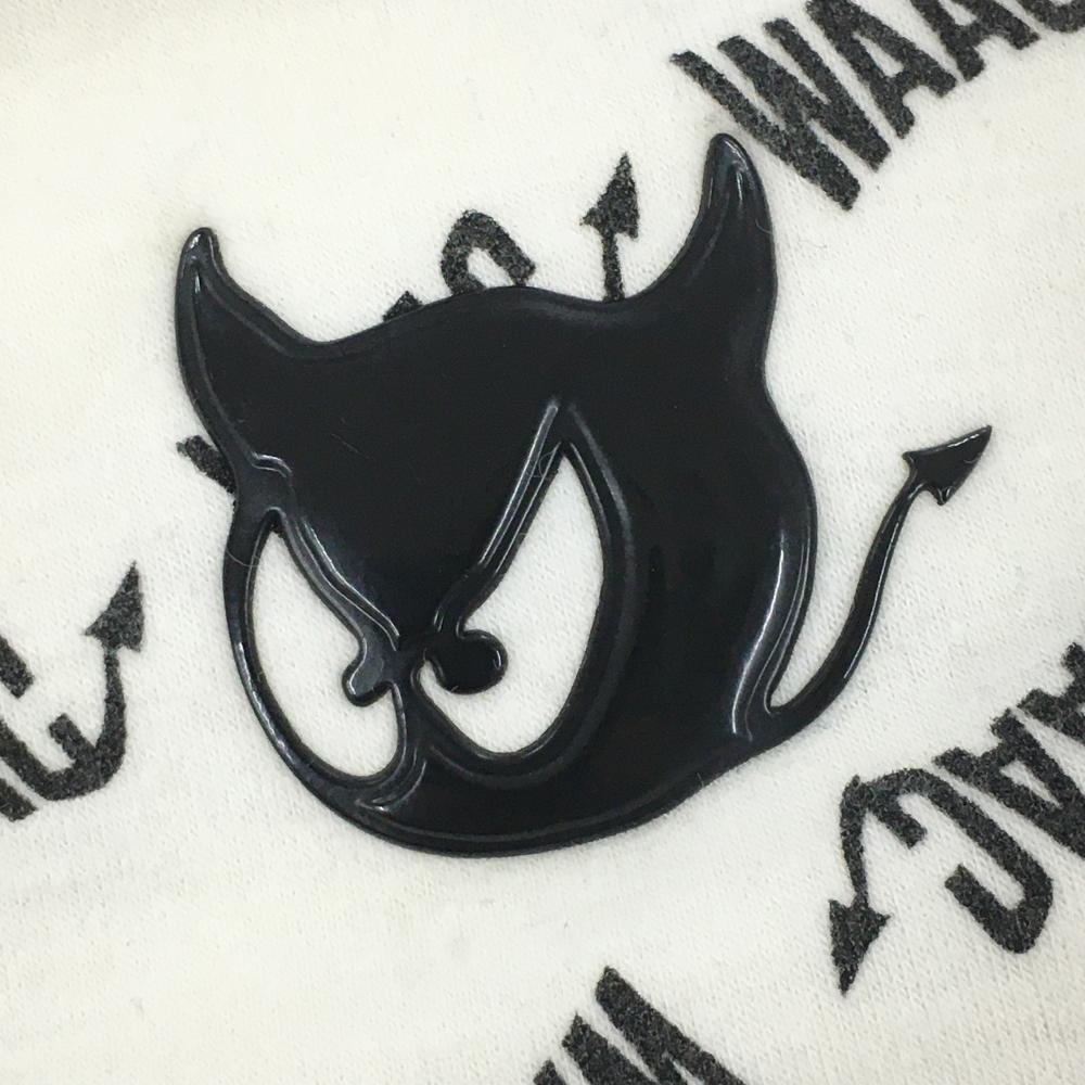 【美品】ワック 長袖ハイネックシャツ 白×黒 ロゴ総柄 表微起毛 アクリル混 繊維付着 メンズ 2(M) ゴルフウェア WAAC