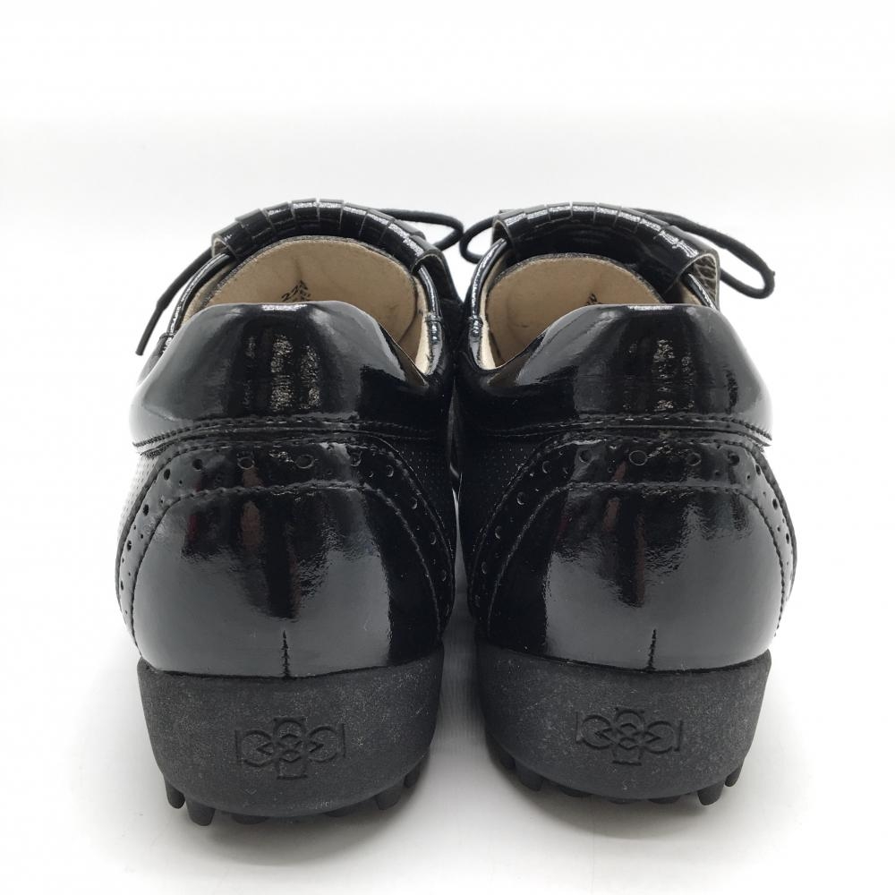 【超美品】アジェイド ゴルフシューズ 黒 一部エナメル ウイングチップ キルト取外し可 スパイクレス レディース 22.5 ゴルフウェア aJADE