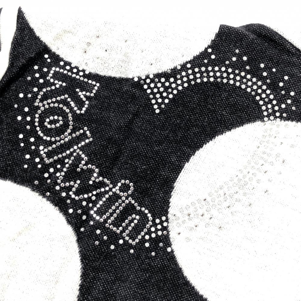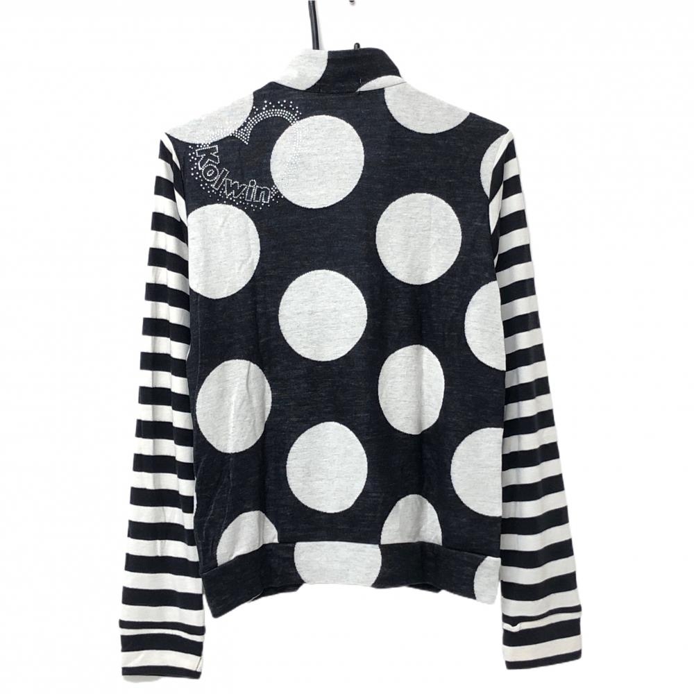 【美品】コルウィン ハイネックセーター 黒×白 ドット柄 袖ボーダー ハーフジップ ニット レディース L ゴルフウェア Kolwin