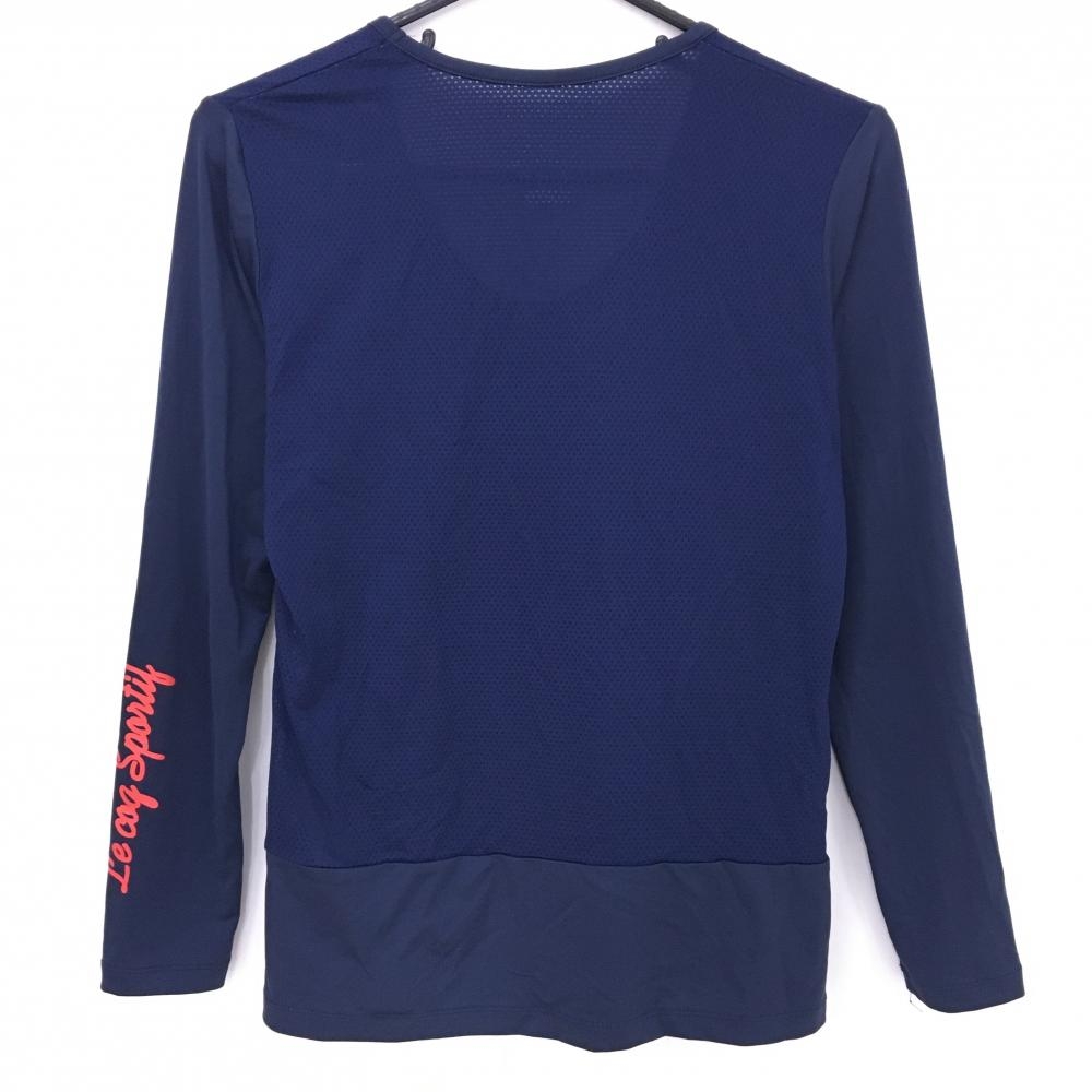 【超美品】ルコックゴルフ インナーシャツ ネイビー 身頃メッシュ調 袖ロゴレッド レディース L ゴルフウェア le coq sportif