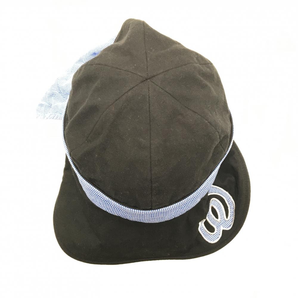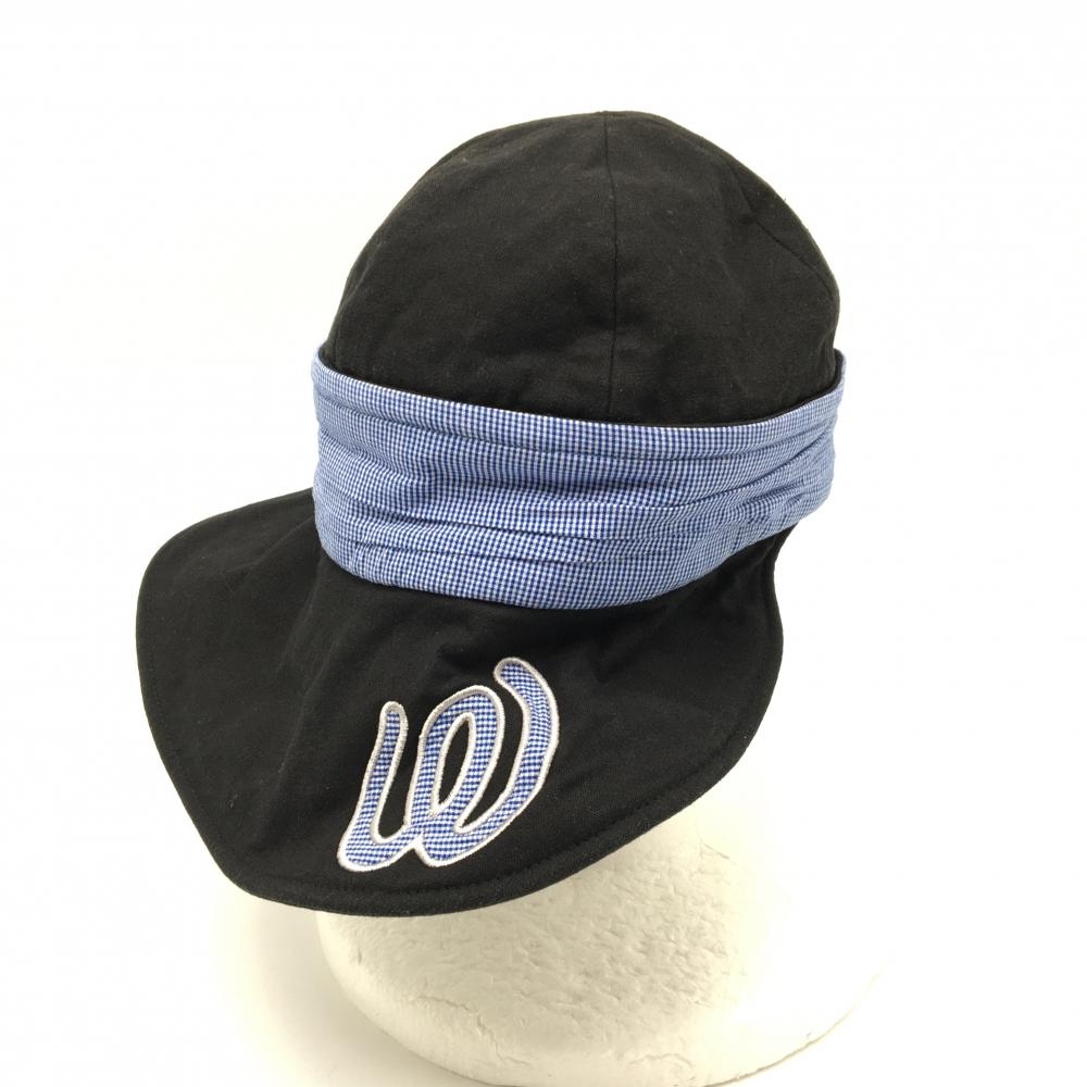 【美品】MUスポーツ 2WAYキャップ 黒×ブルー ロゴ刺しゅう サンバイザー 日よけ付き レディース F ゴルフウェア M・U SPORTS