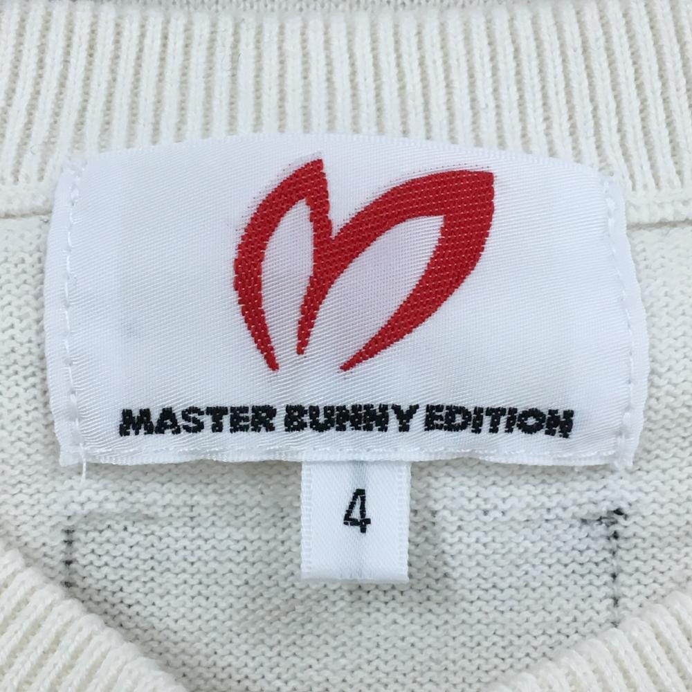 【美品】マスターバニー セーター 白×黒 フロントロゴ カシミヤ混 ニット メンズ 4(M) ゴルフウェア MASTER BUNNY EDITION