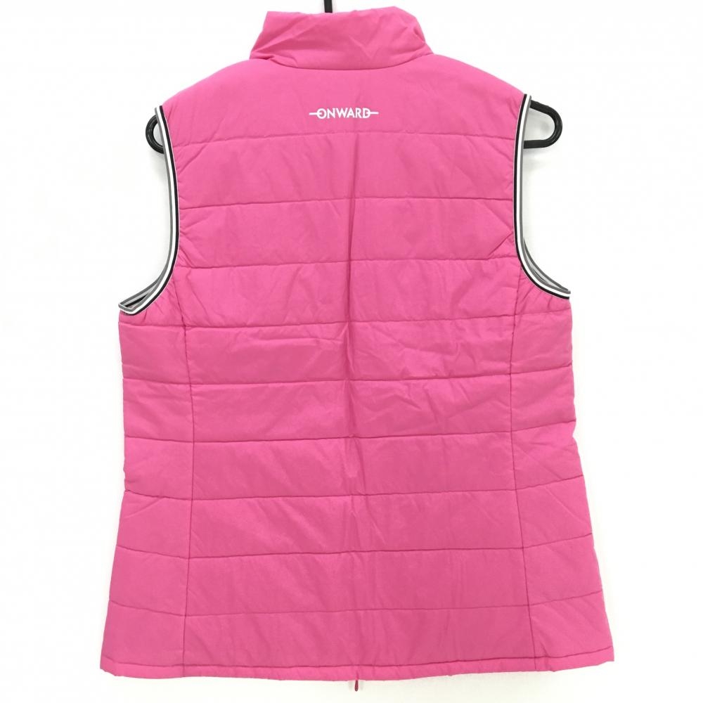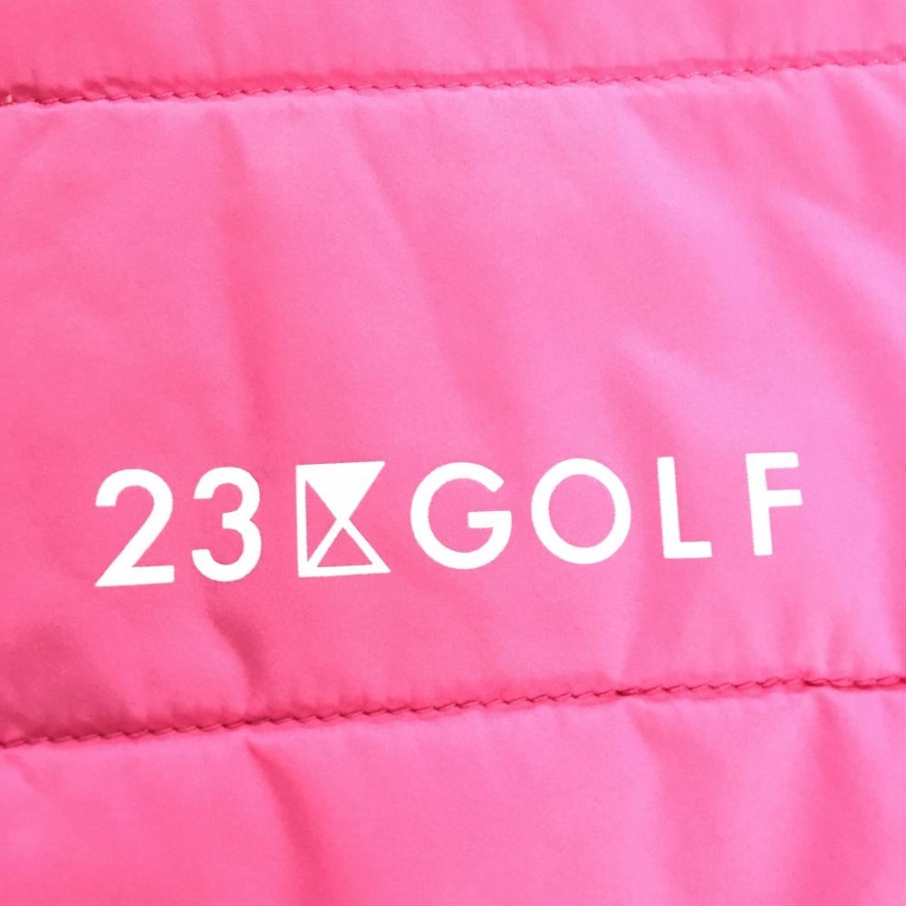 【超美品】23区ゴルフ 中綿ベスト ピンク×白 袖口ライン ダブルジップ レディース III(XL) ゴルフウェア 23区