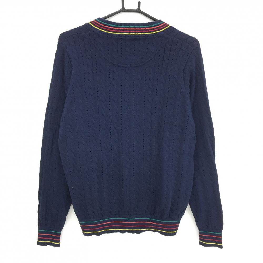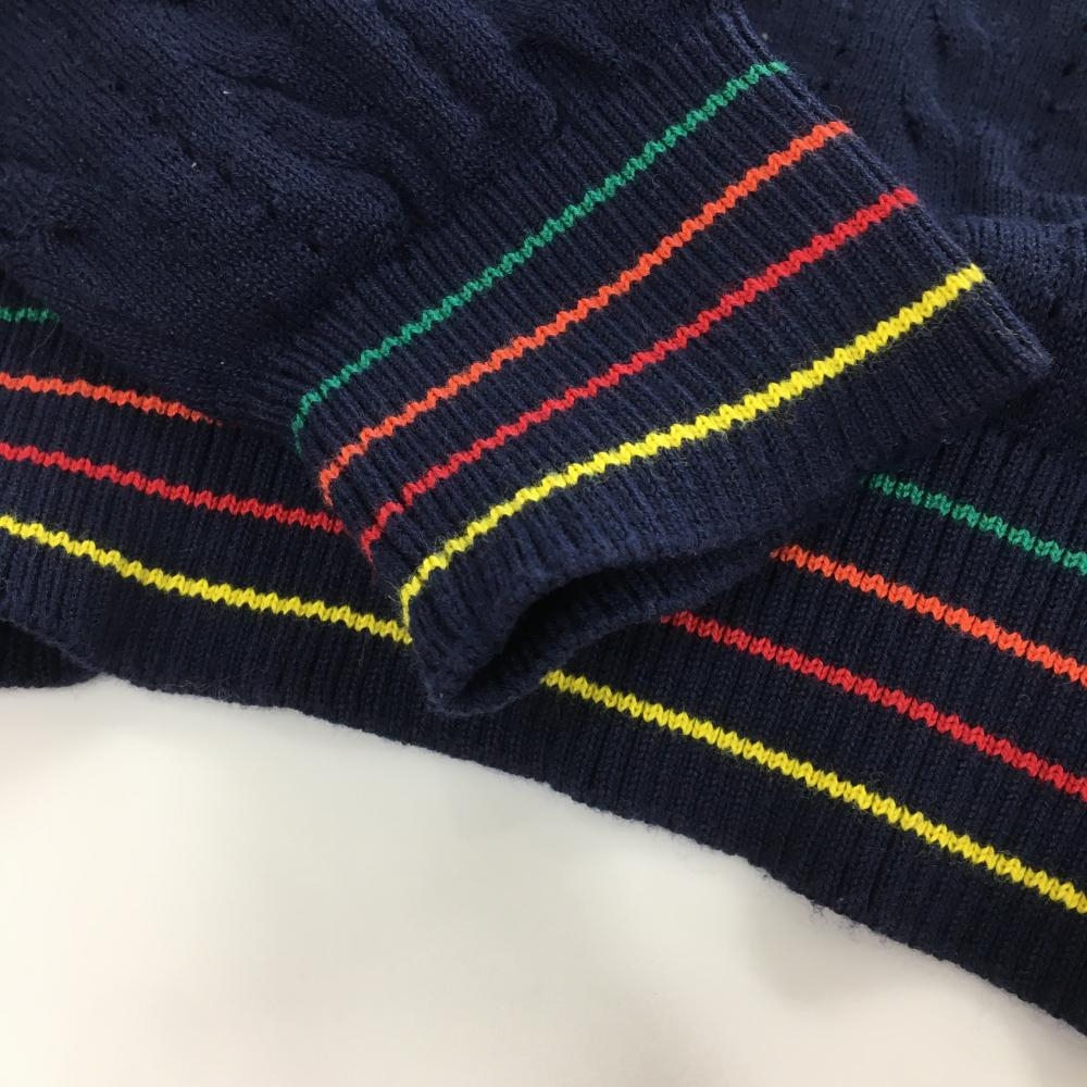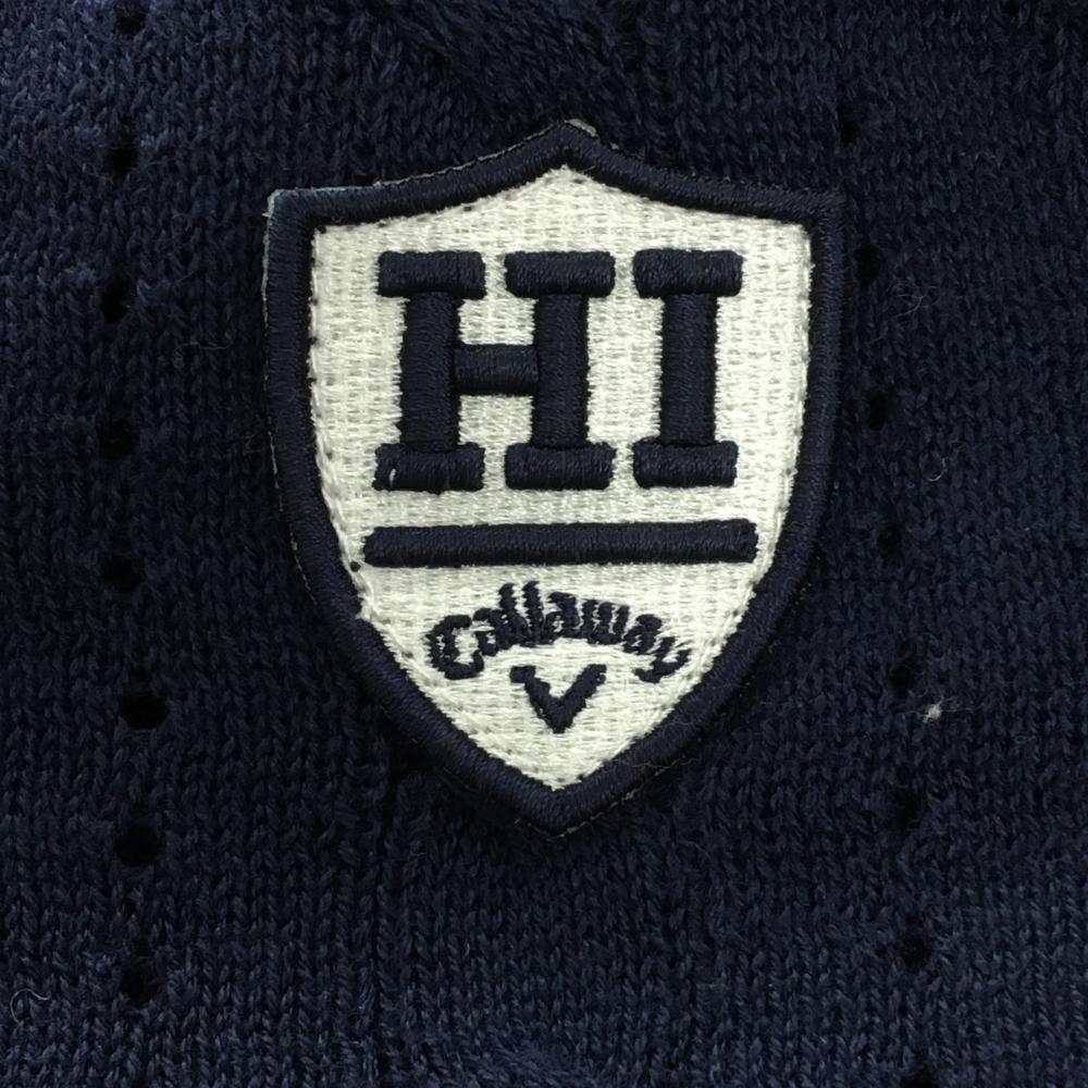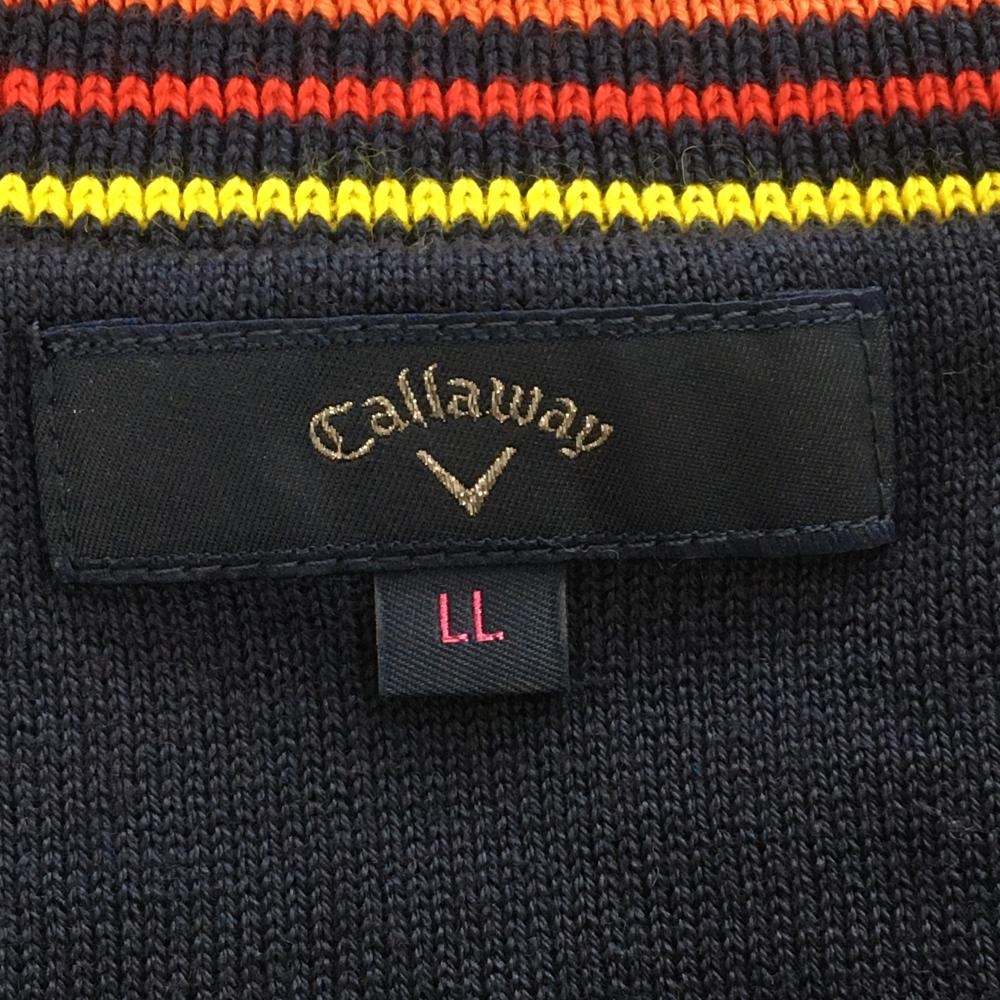 【美品】キャロウェイ セーター ネイビー ケーブル編み コットン混 ネックライン ニット レディース LL ゴルフウェア Callaway