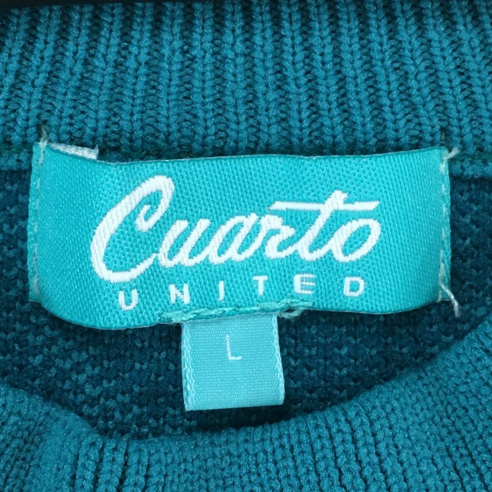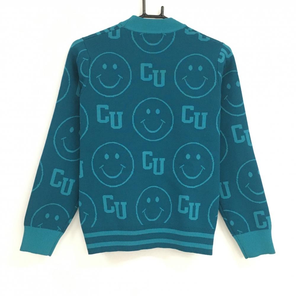 【超美品】クアルトユナイテッド ハイネックセーター グリーン ニコちゃん総柄 ロゴ刺しゅう レディース L ゴルフウェア CUARTO UNITED