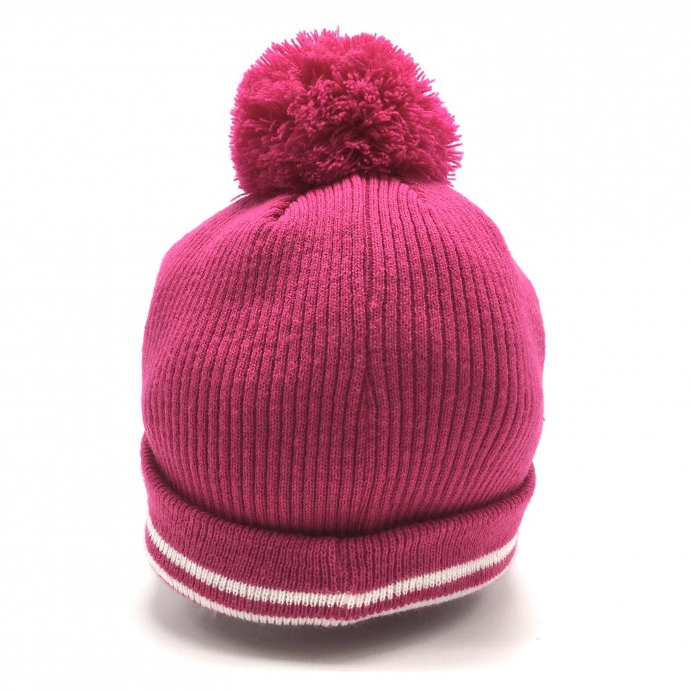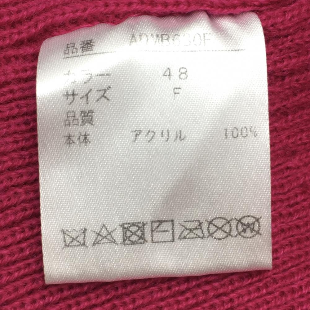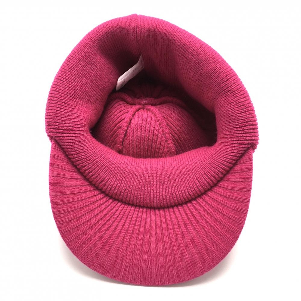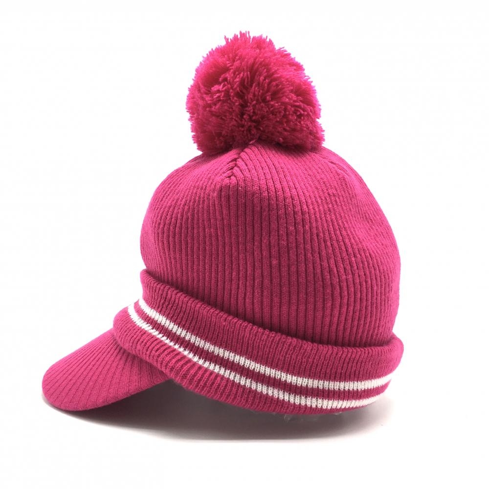 【超美品】アドミラル つば付きニット帽 ピンク×白 ライン ボンボン付 48 F ゴルフウェア Admiral