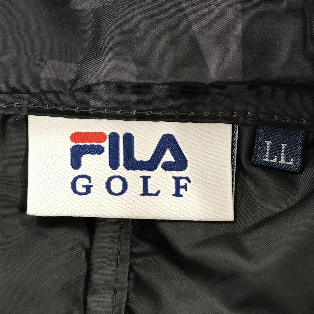【新品】フィラゴルフ ダウンベスト グレー×黒 ロゴ総柄 撥水加工 レディース LL ゴルフウェア FILA GOLF