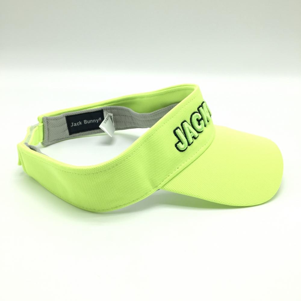 【美品】ジャックバニー サンバイザー 蛍光グリーン系 立体ロゴ刺しゅう FR ゴルフウェア Jack Bunny