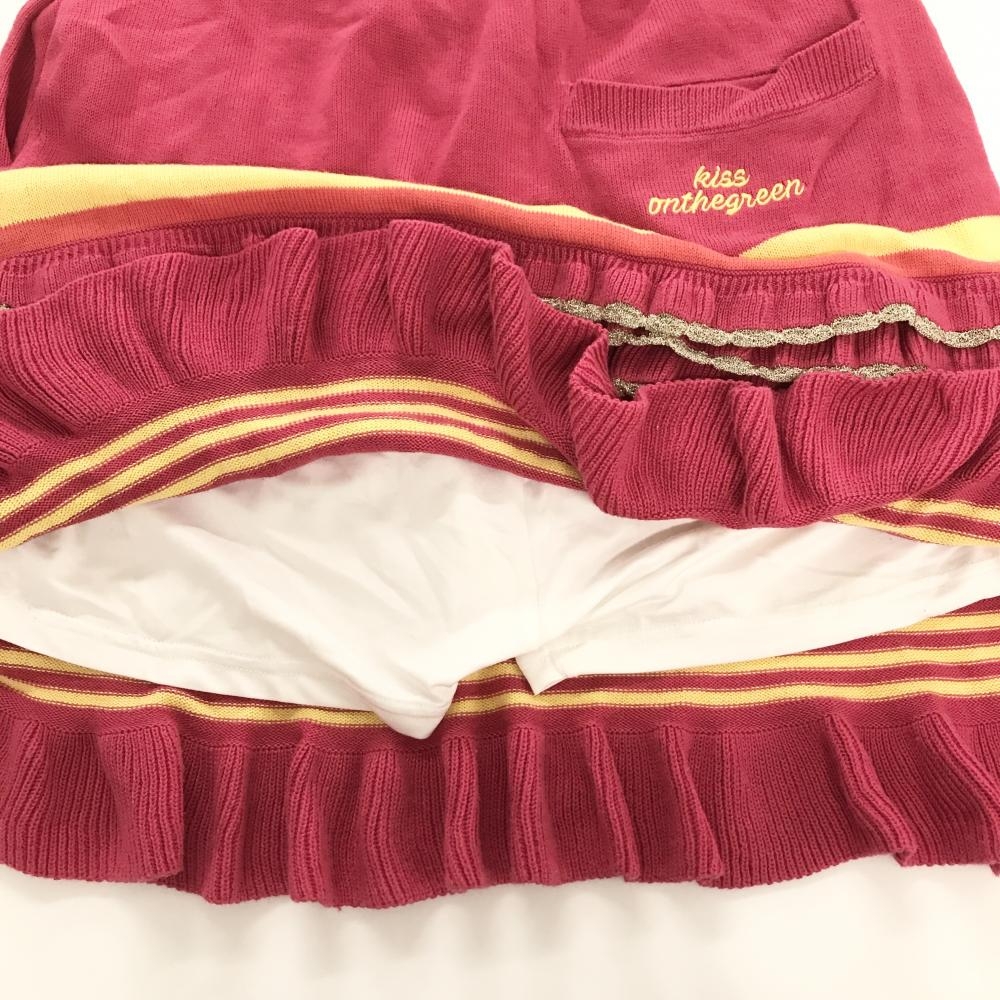 【美品】キスオンザグリーン ニットスカート ピンク×イエロー 内側インナーパンツ レディース ゴルフウェア kiss on the green