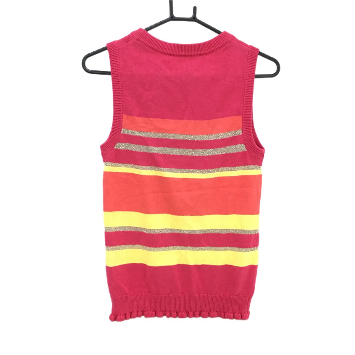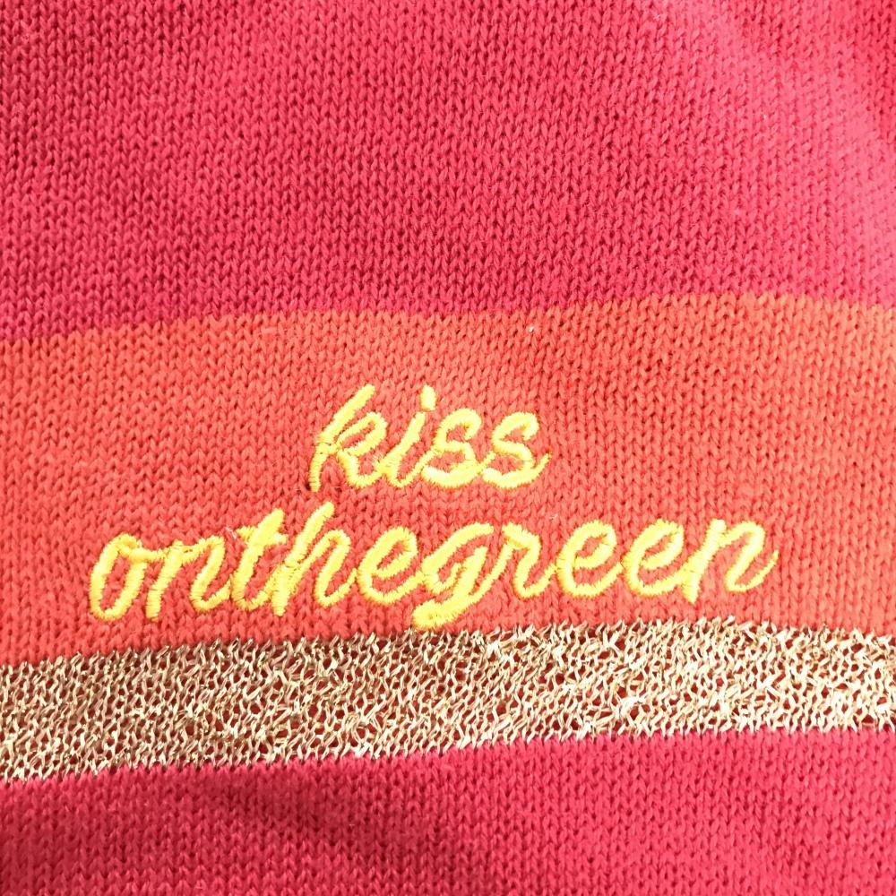 【美品】キスオンザグリーン ニットベスト ピンク系×イエロー ボーダー レディース ゴルフウェア kiss on the green