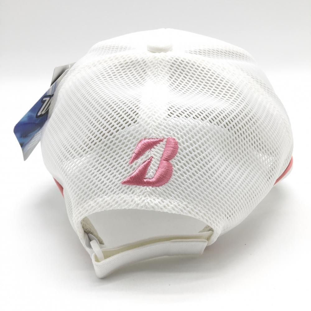 【新品】ブリヂストン メッシュキャップ 白×ピンク ロゴ刺しゅう ブランドタグ無 フリーサイズ(約55-58cm) ゴルフウェア Bridgestone