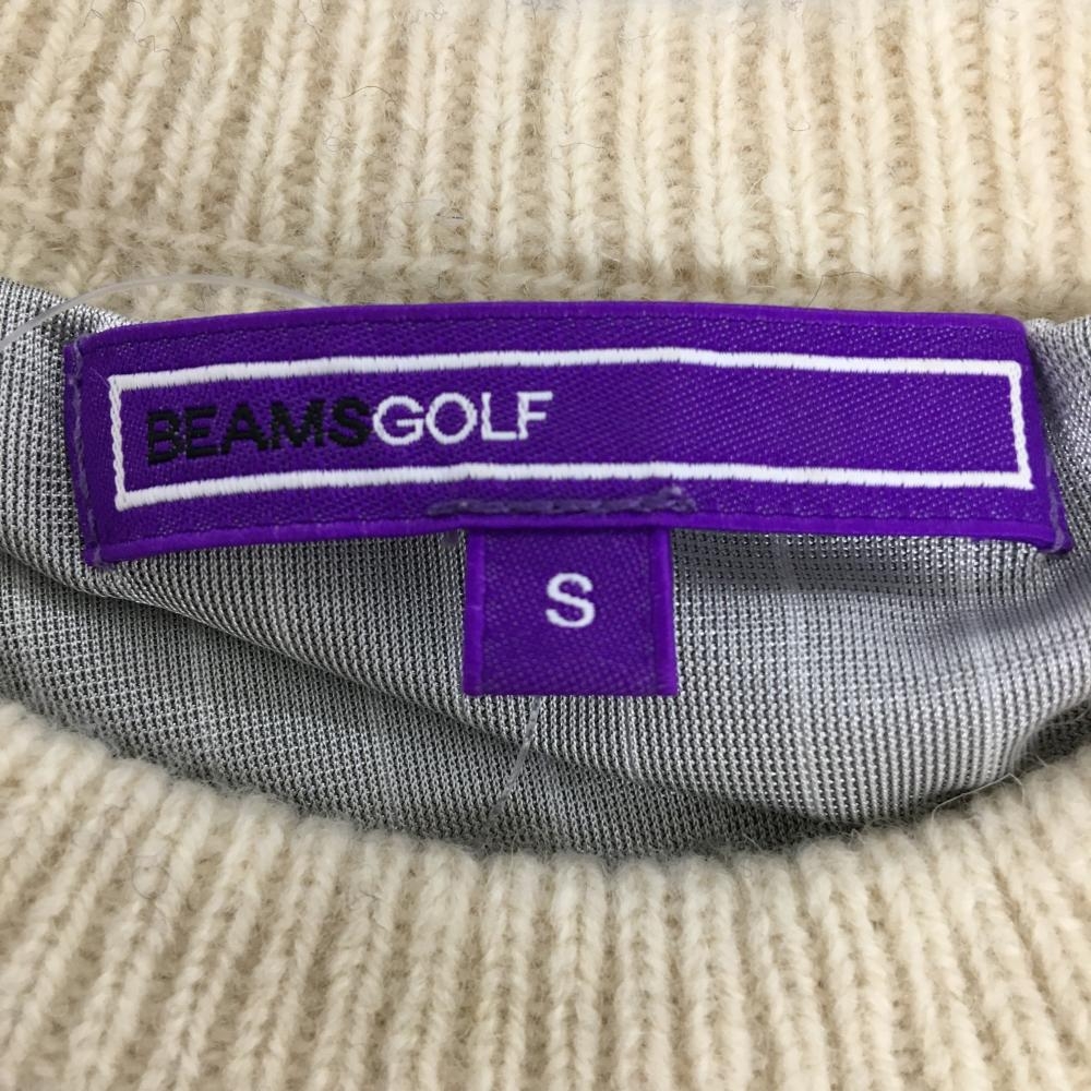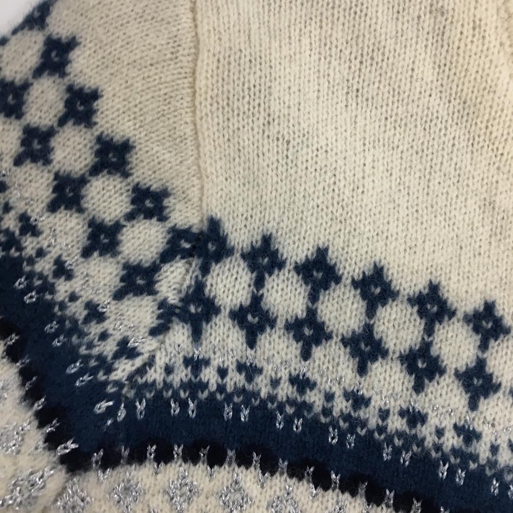 【美品】ビームスゴルフ セーター 白×ネイビー 胸上総柄 ウール混 蓄熱裏地 レディース S ゴルフウェア BEAMS GOLF