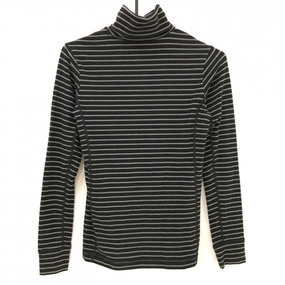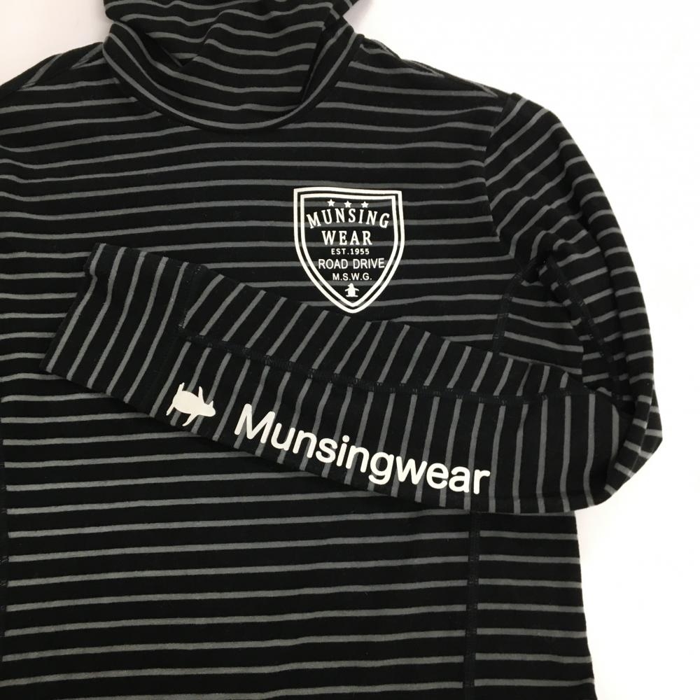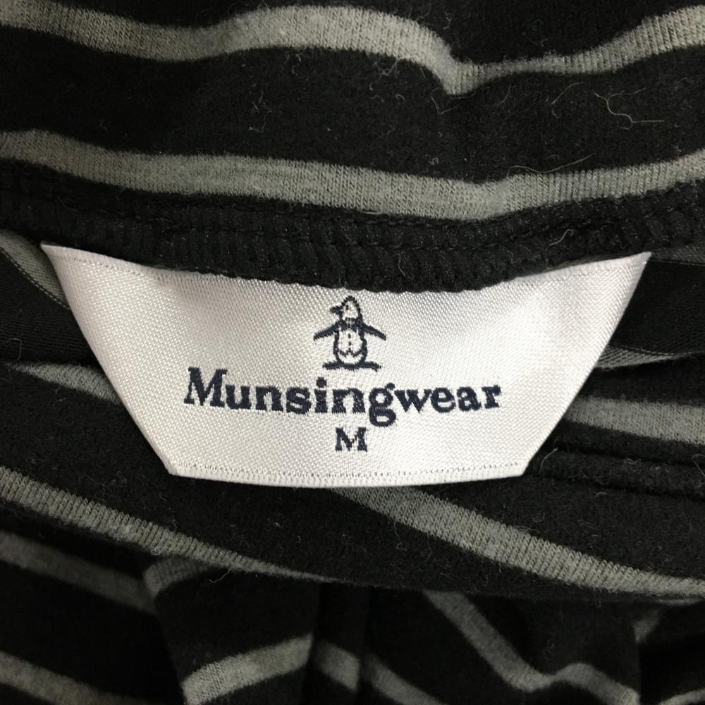 【美品】マンシングウェア 長袖タートルネックシャツ 黒×グレー ボーダー 微起毛 ストレッチ レディース M ゴルフウェア Munsingwear