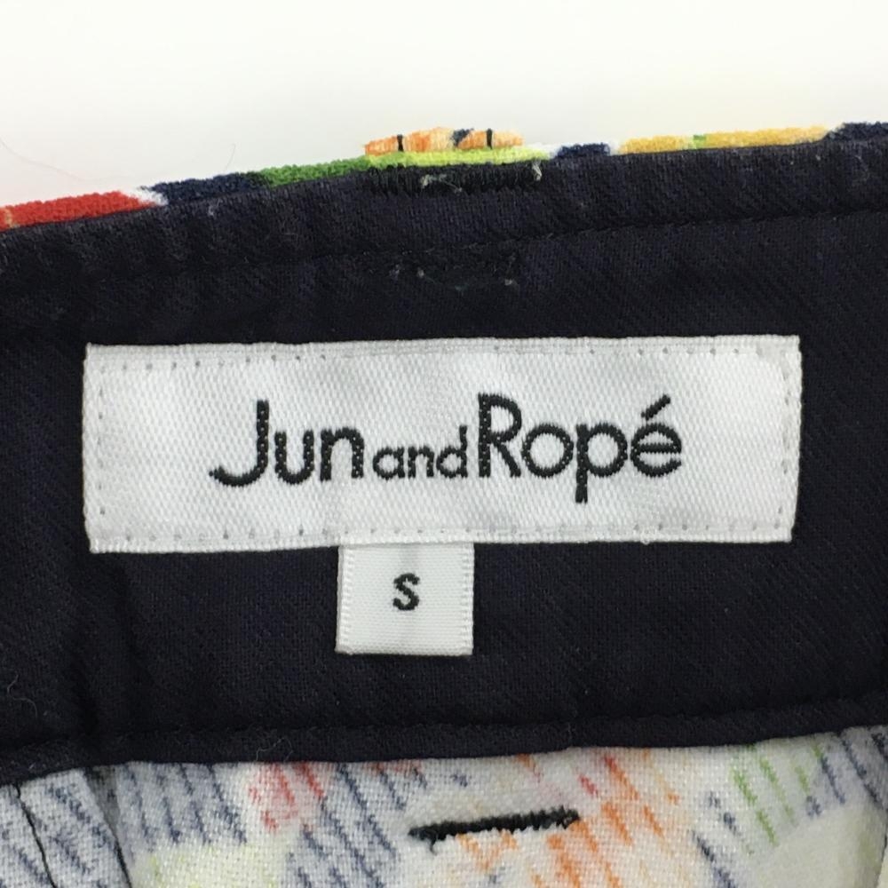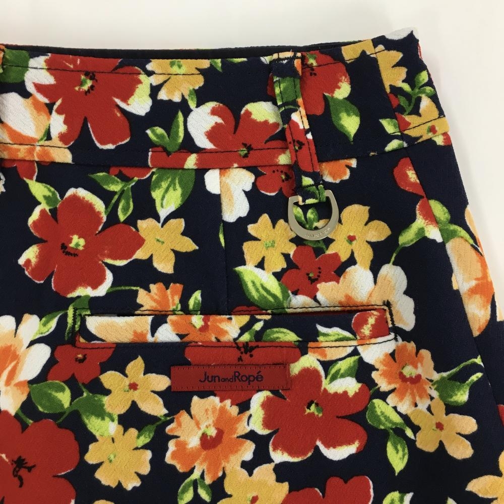 【超美品】ジュンアンドロペ スカート ネイビー×レッド×イエロー 花柄 ストレッチ レディース S ゴルフウェア JUN&ROPE
