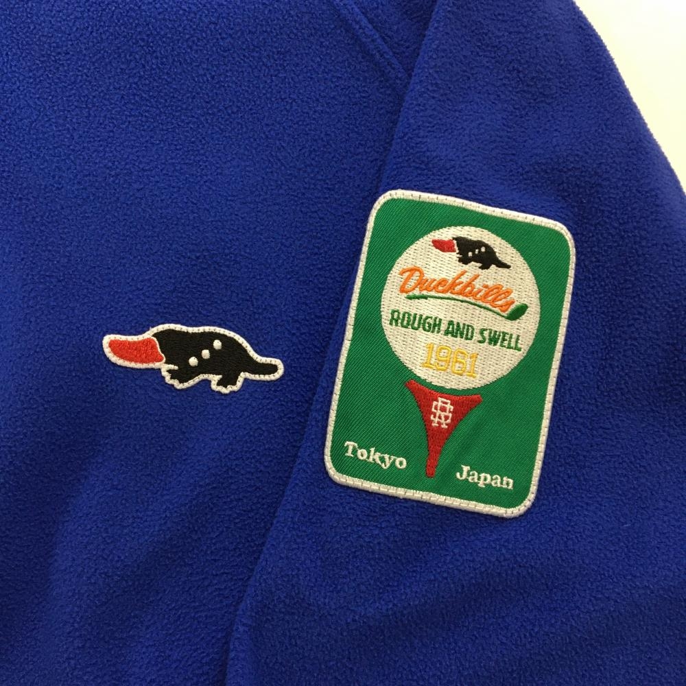 ラフアンドスウェル フリースブルゾン ブルー 複数ワッペン 刺しゅう メンズ L ゴルフウェア rough&swell