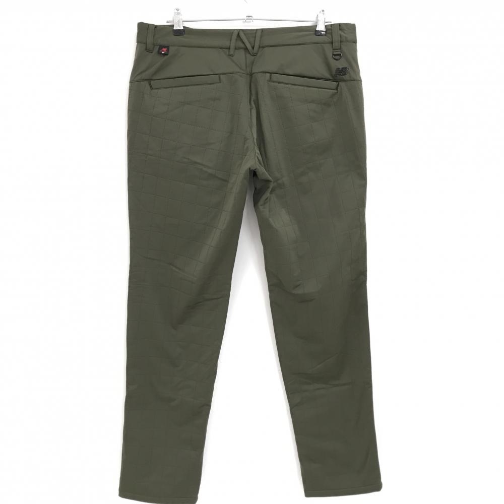 【美品】ニューバランスゴルフ パンツ カーキ 裏起毛 格子地模様 メンズ 7(2XL) ゴルフウェア 大きいサイズ New Balance