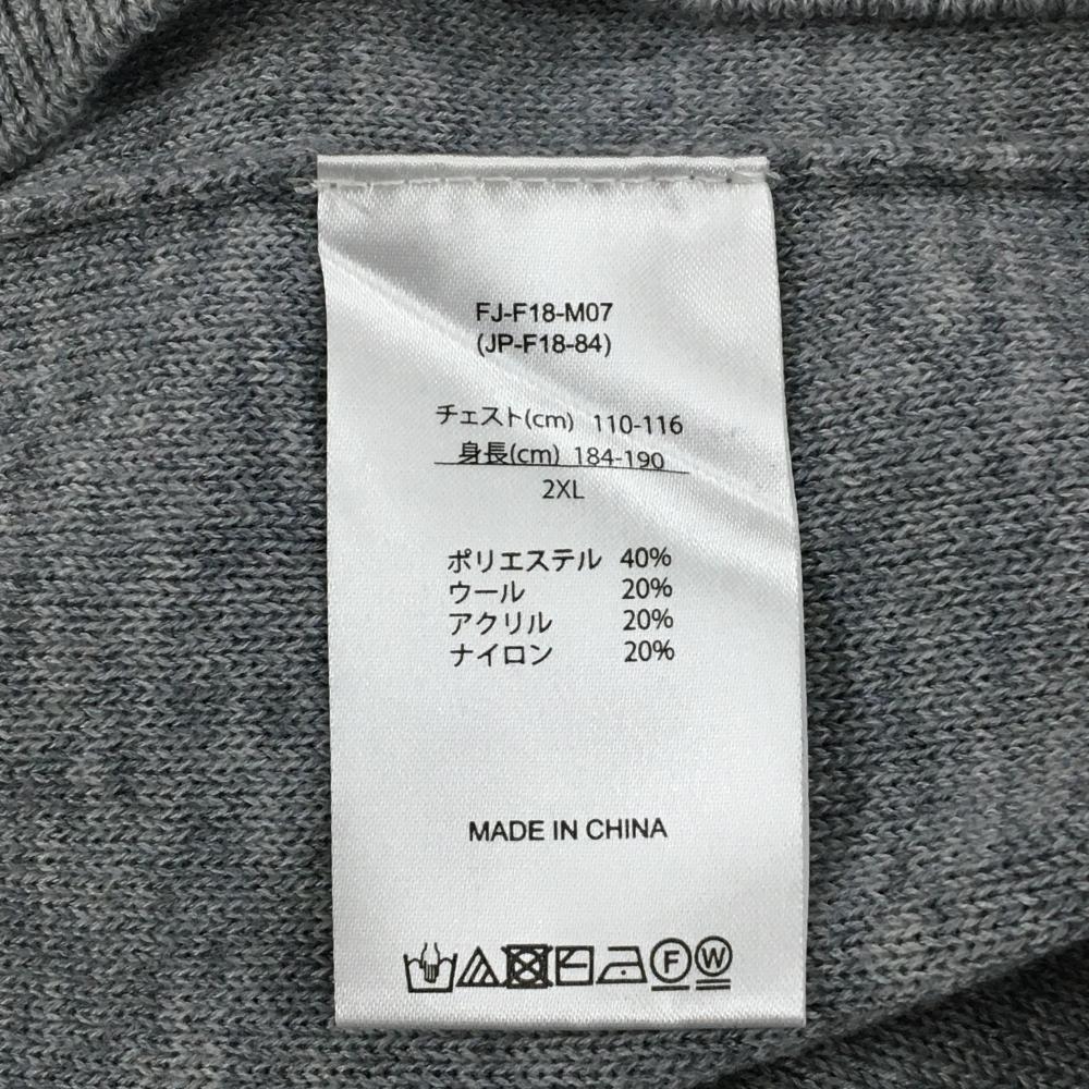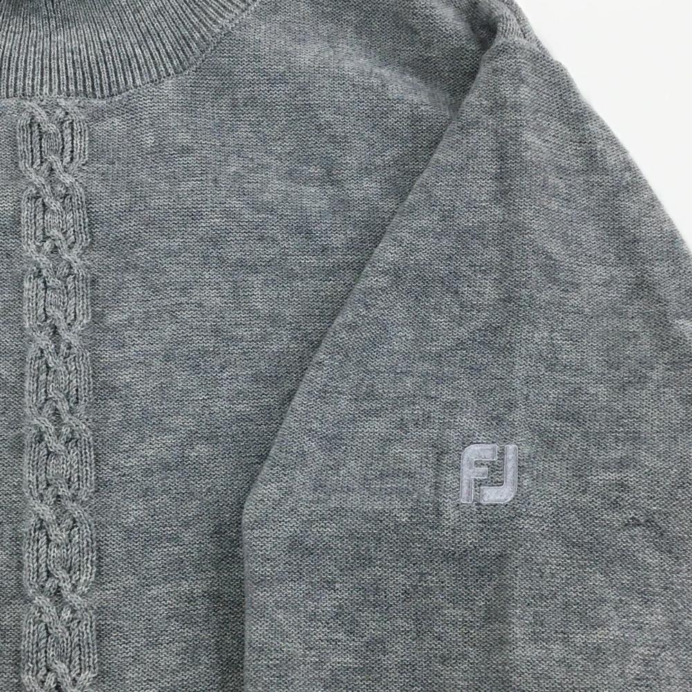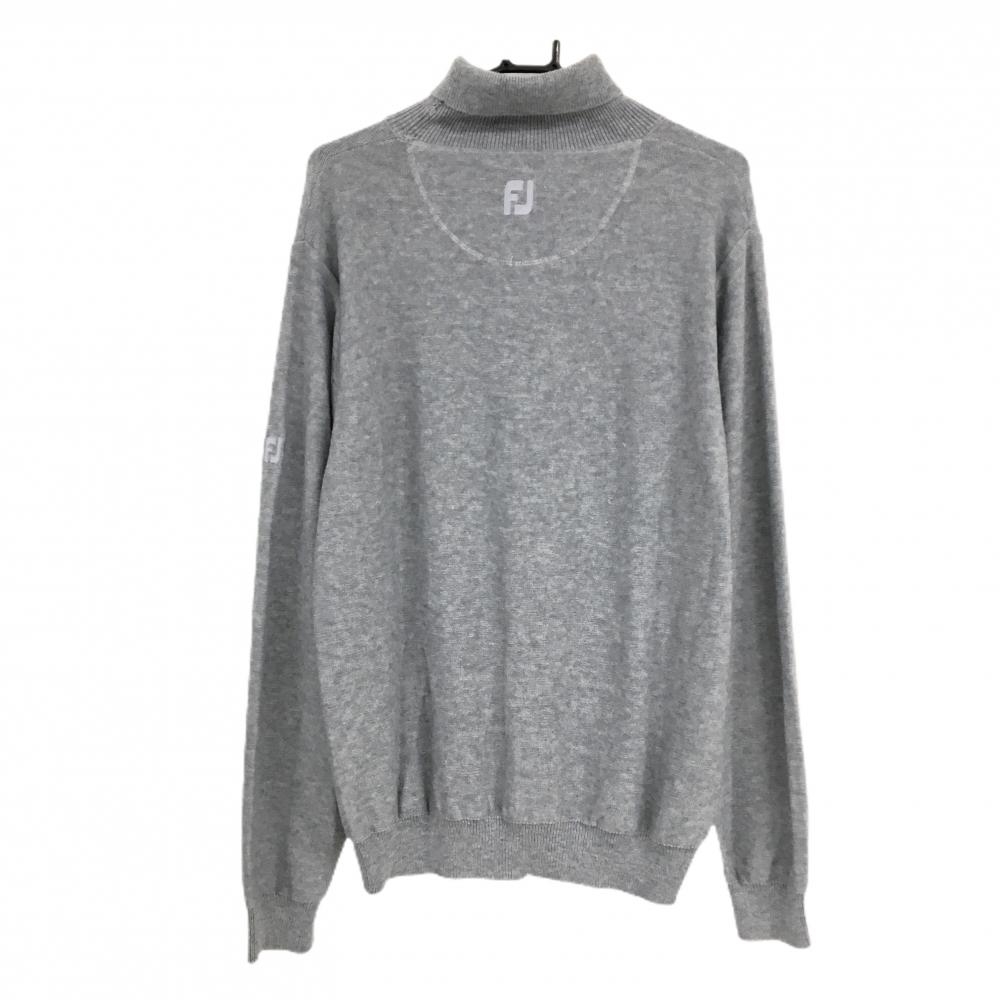 【美品】フットジョイ タートルネックセーター グレー 袖ロゴ刺しゅう ニット メンズ 2XL ゴルフウェア 大きいサイズ FootJoy