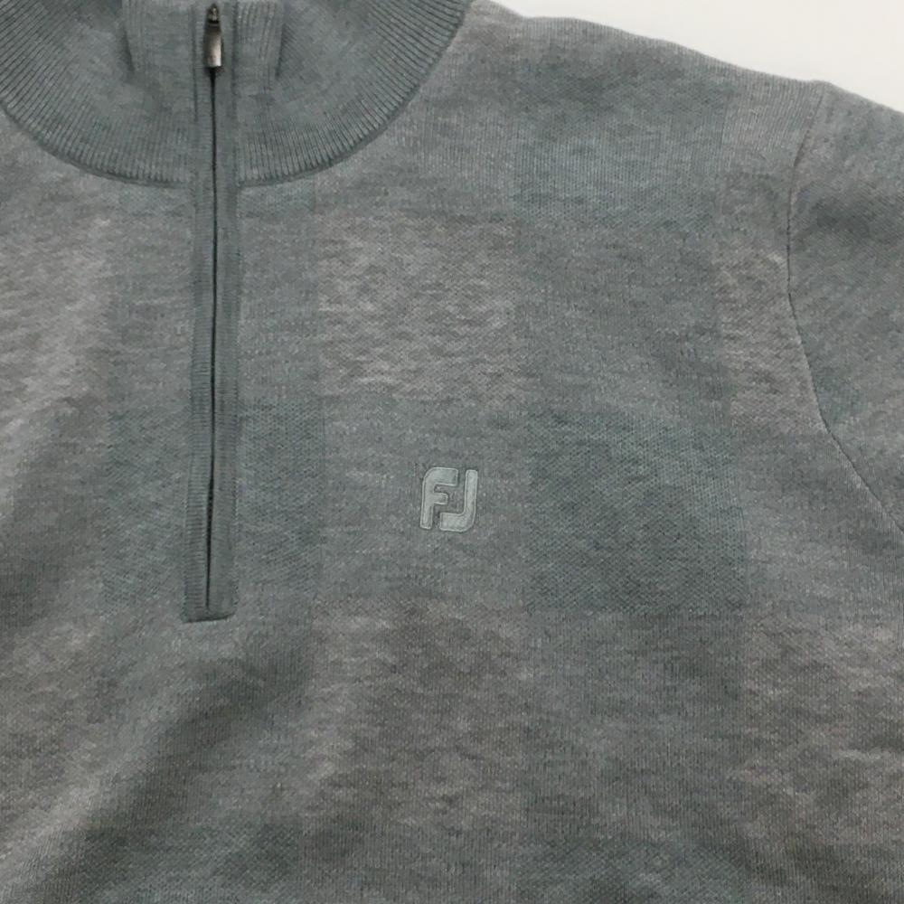 【超美品】フットジョイ 裏地付セーター グレー ハーフジップ ブロックチェック メンズ 2XL ゴルフウェア 大きいサイズ FootJoy