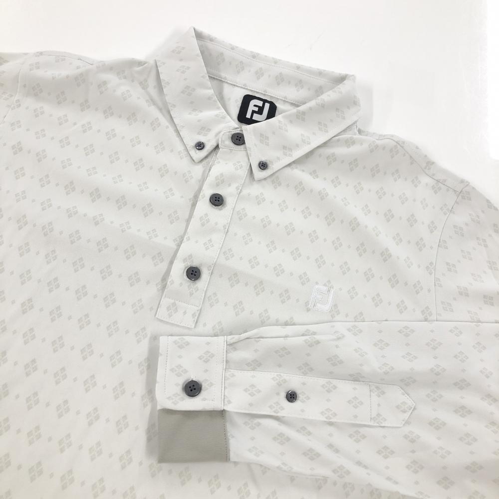 【超美品】フットジョイ 長袖ポロシャツ 白×ライトグレー 総柄 ボタンダウン メンズ 2XL ゴルフウェア 大きいサイズ FootJoy