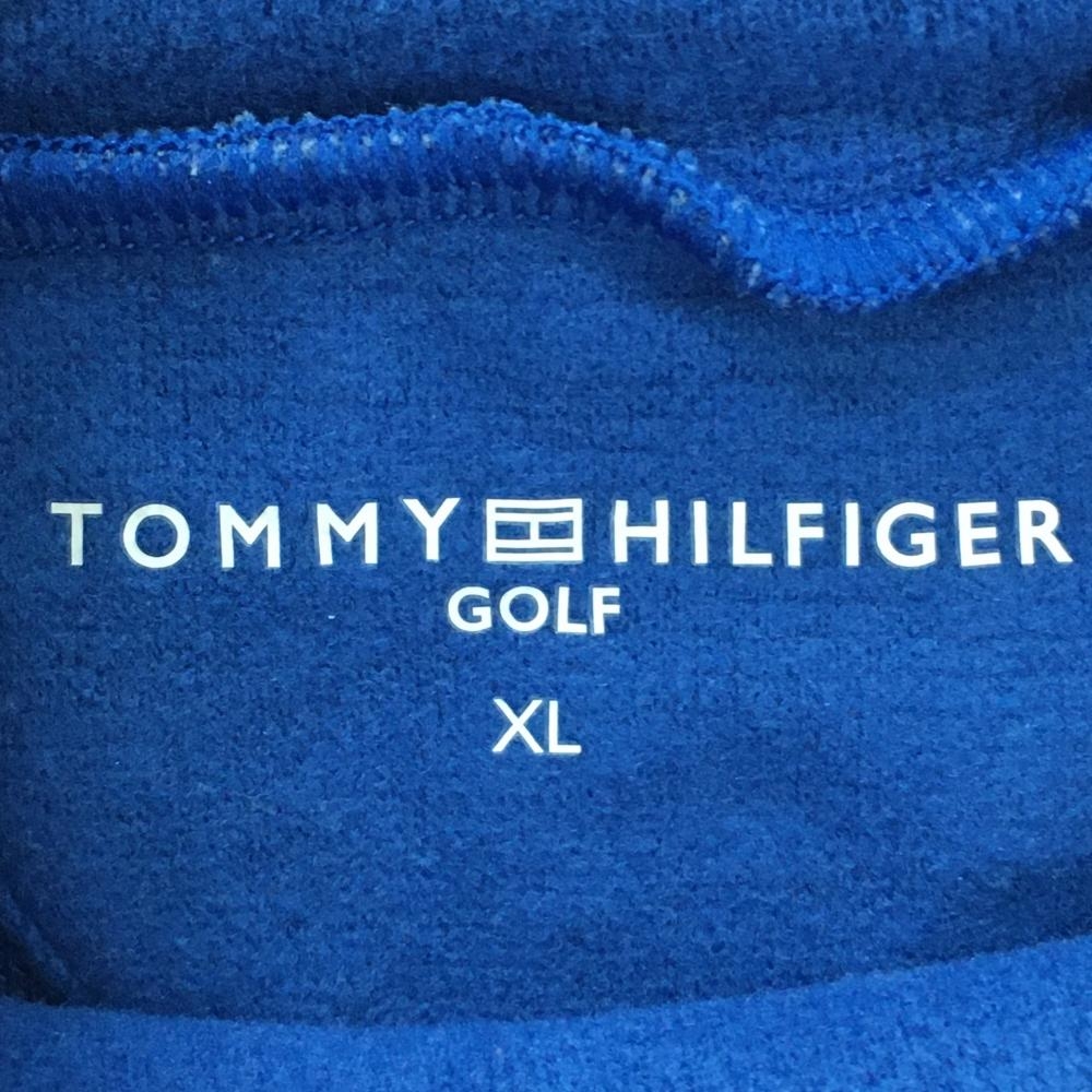 【美品】トミーヒルフィガー 長袖ハイネックシャツ ブルー×白 微起毛 メンズ XL ゴルフウェア Tommy Hilfiger Golf