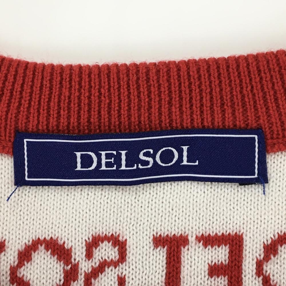 デルソル セーター レッド×白 胸元ワッペン ウール混 ニット レディース LL ゴルフウェア DELSOL