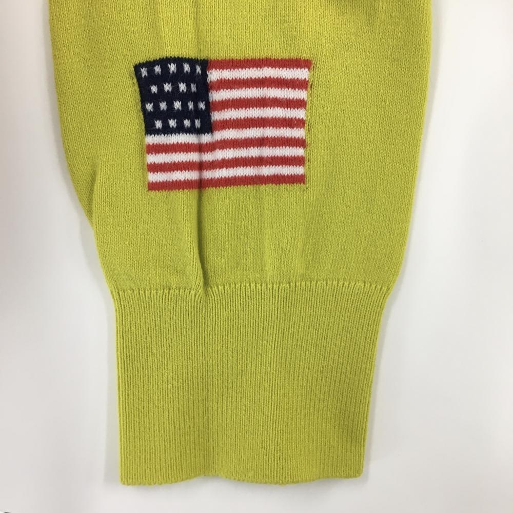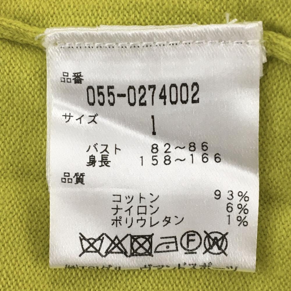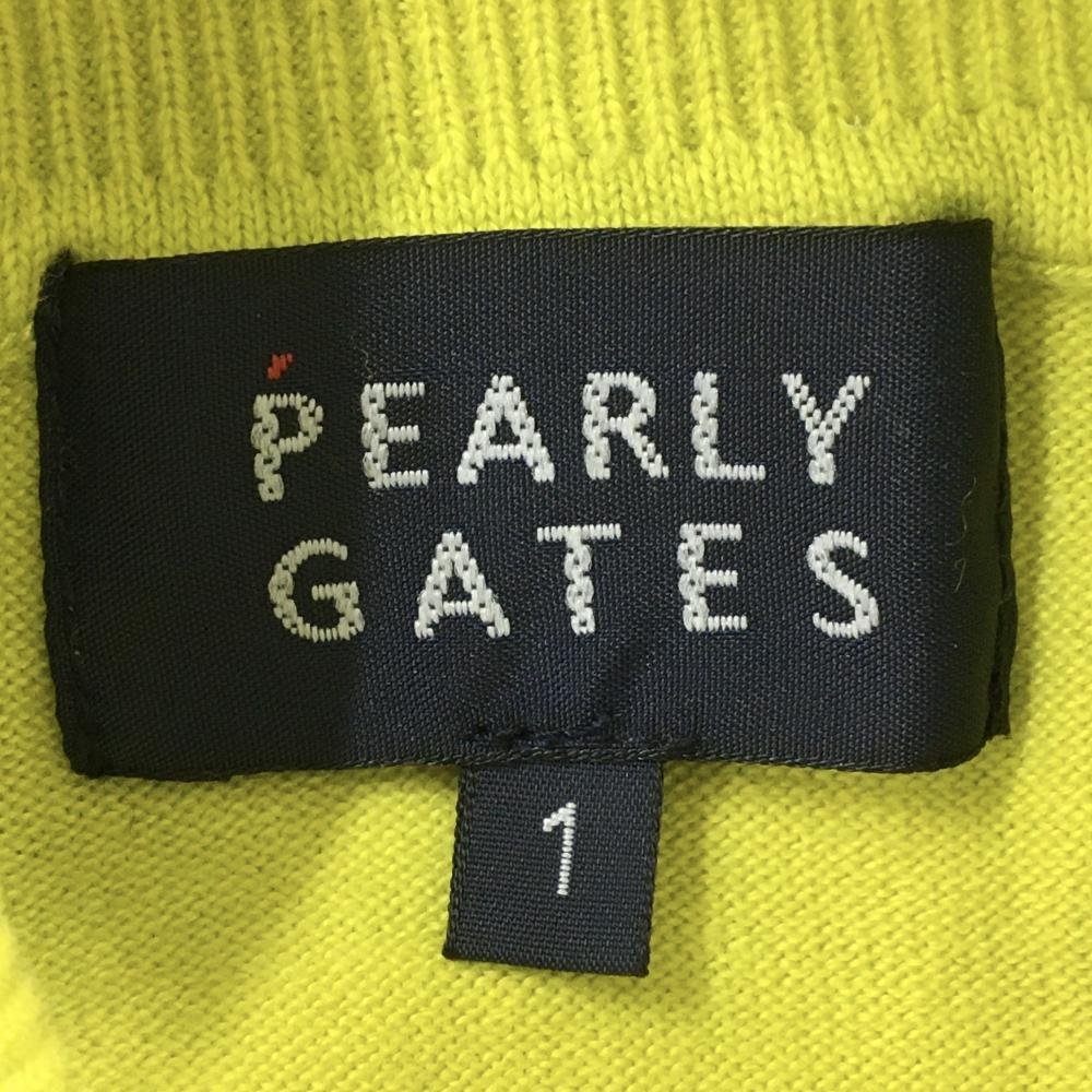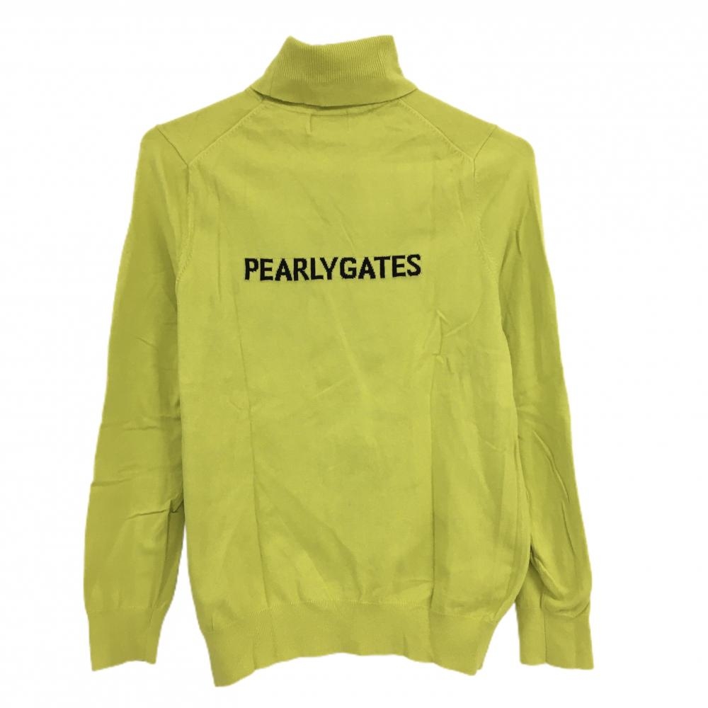 【美品】パーリーゲイツ タートルネックセーター イエロー ロゴネイビー コットン混 レディース 1(M) ゴルフウェア PEARLY GATES