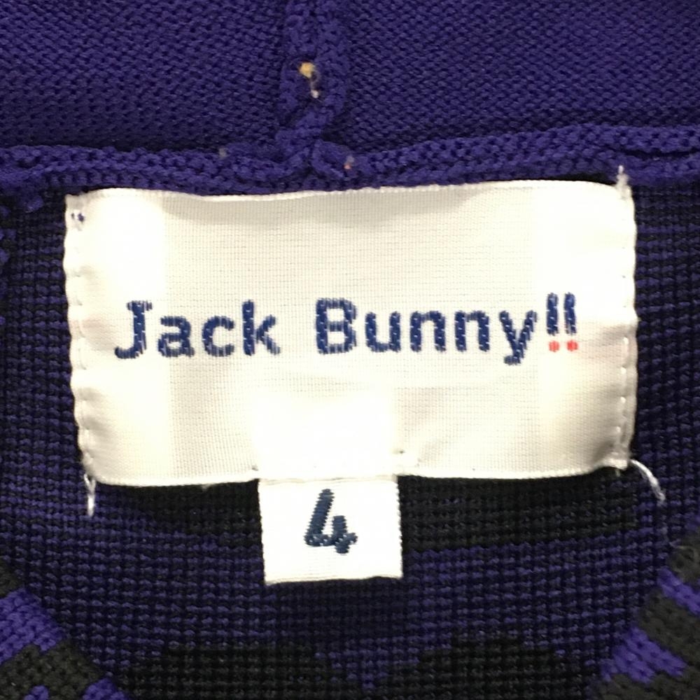 【美品】ジャックバニー ニットジップパーカー パープル×黒 ジップロゴ ブルゾン メンズ 4(M) ゴルフウェア Jack Bunny