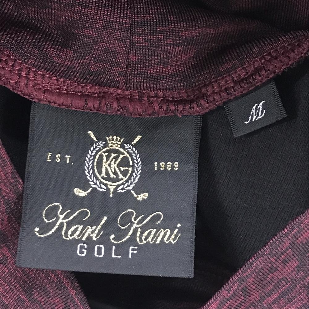 【超美品】カールカナイゴルフ 長袖ハイネックシャツ 杢ボルドー ロゴ刺しゅう 裏起毛 メンズ M ゴルフウェア KarlKani