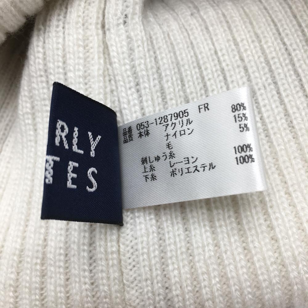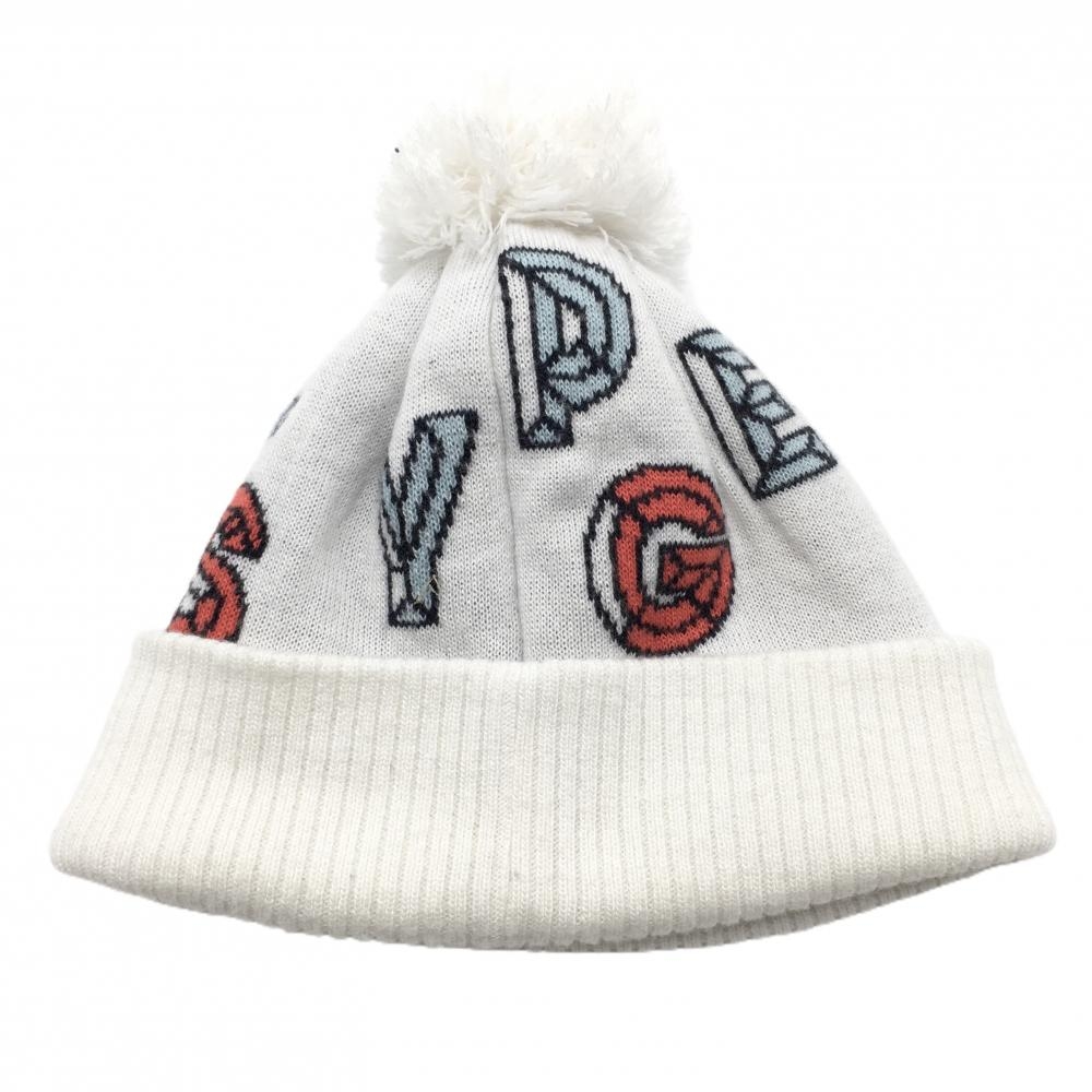 【超美品】パーリーゲイツ ニット帽 白×ライトブルー×レッド ロゴ総柄 ポンポン付 FR ゴルフウェア PEARLY GATES