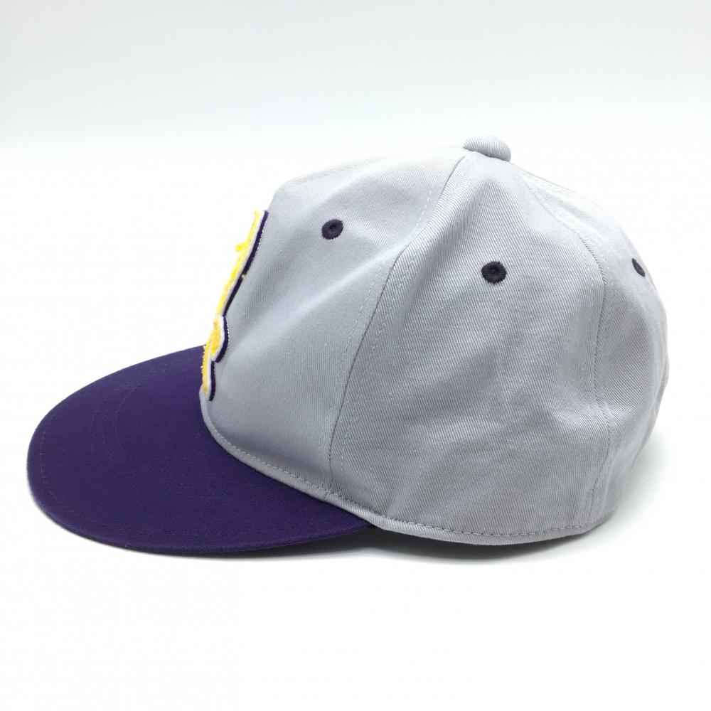 【超美品】マークアンドロナ フラットキャップ グレー×パープル 立体スカル FREE ゴルフウェア MARK&LONA