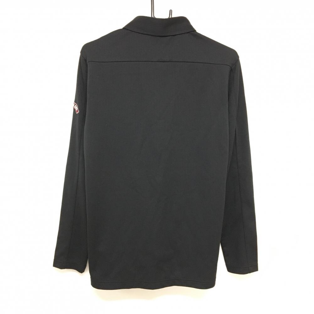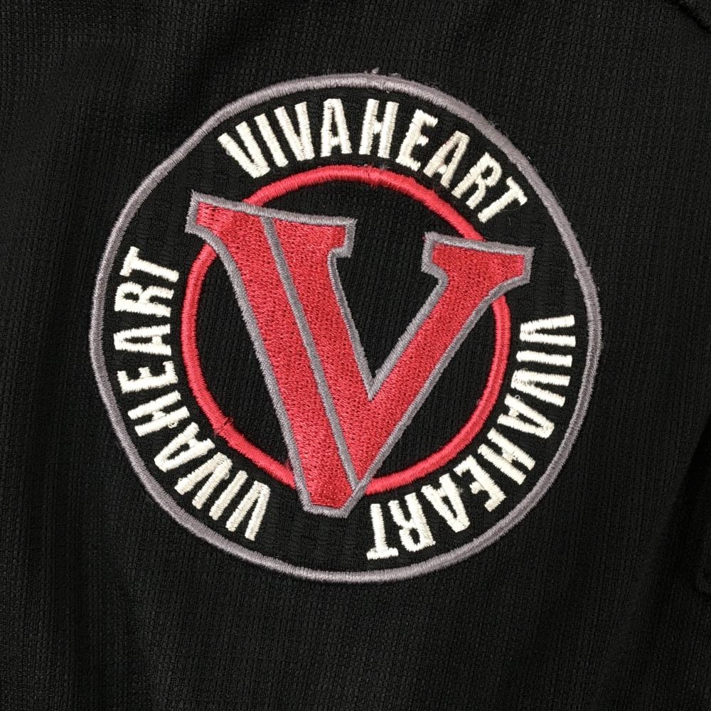 【超美品】ビバハート 長袖ポロシャツ 黒 地模様 ボタンダウン 胸ロゴ刺しゅう メンズ 50(L) ゴルフウェア VIVA HEART