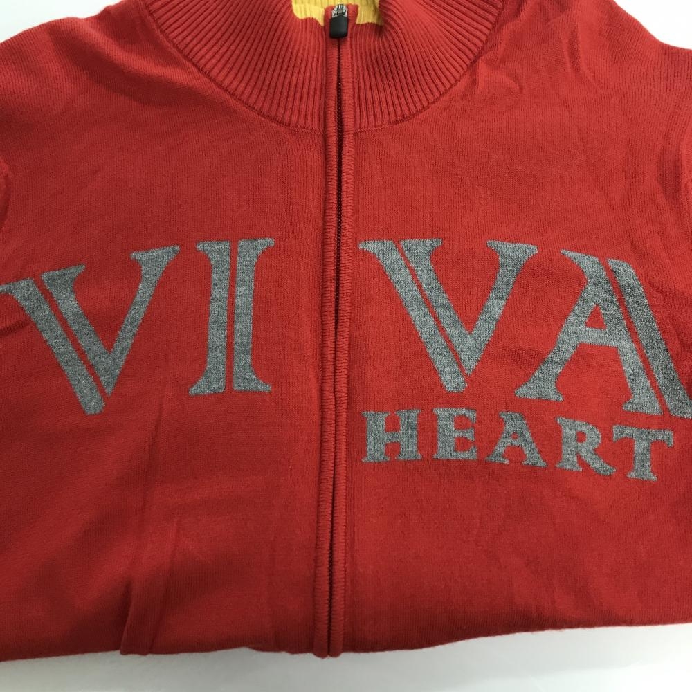 【美品】ビバハート ニットジャケット レッド×グレー×イエロー ダブルジップ 胸ロゴ メンズ 48(M) ゴルフウェア VIVA HEART