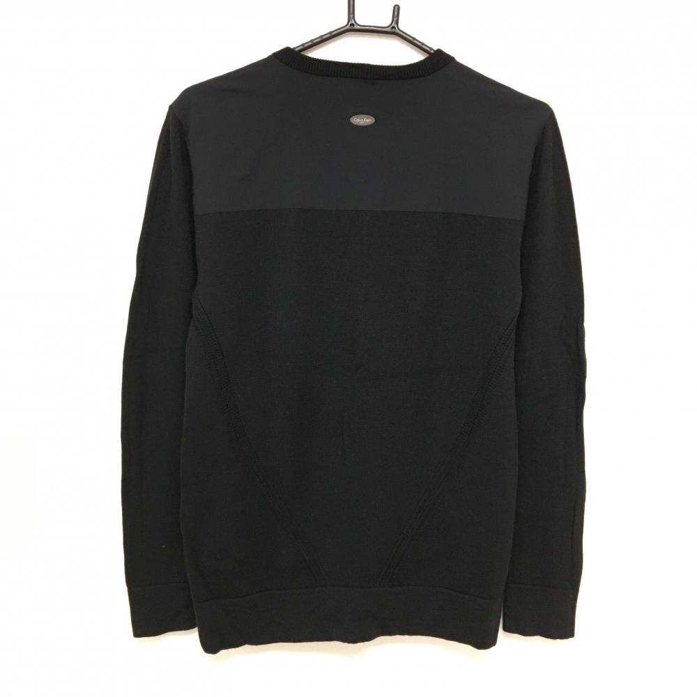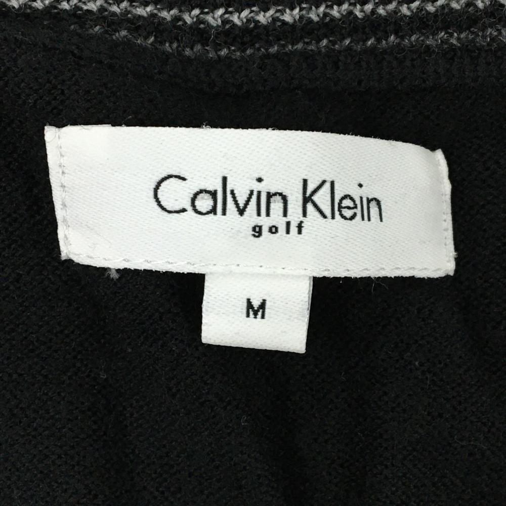 【超美品】カルバンクラインゴルフ セーター 黒 背面上布切替 Vネック ウール100% ニット メンズ M ゴルフウェア CalvinKlein