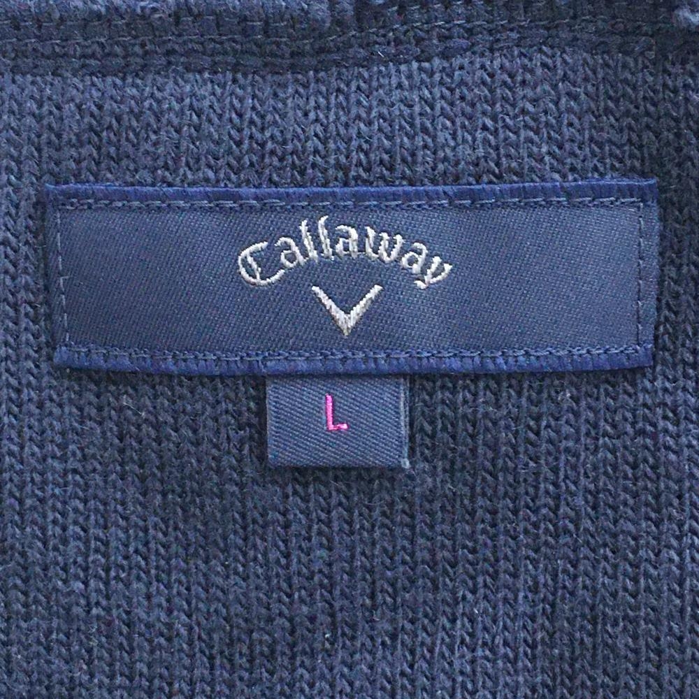 キャロウェイ ニットベスト ネイビー×白 一部ケーブル編み ウール混 Vネック レディース L ゴルフウェア Callaway