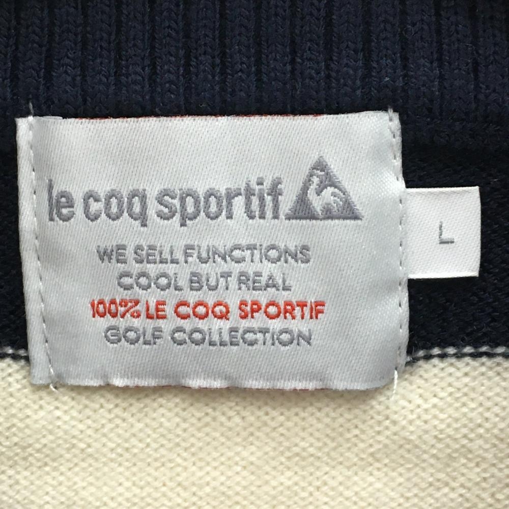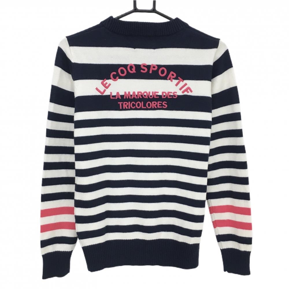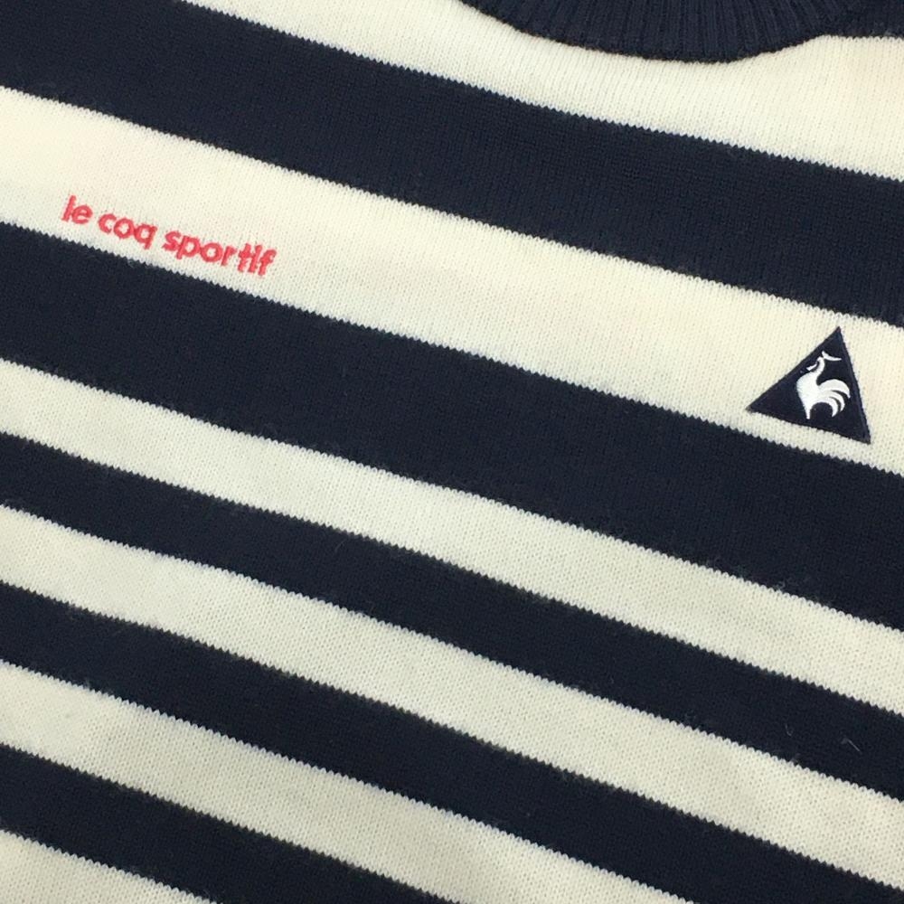 【超美品】ルコックゴルフ セーター 白×ネイビー ボーダー ウール混 ニット レディース L ゴルフウェア le coq sportif