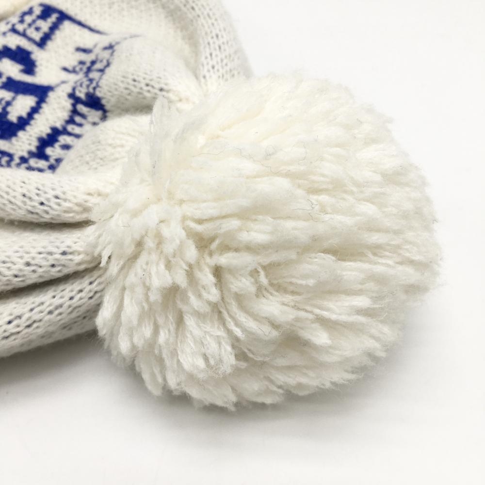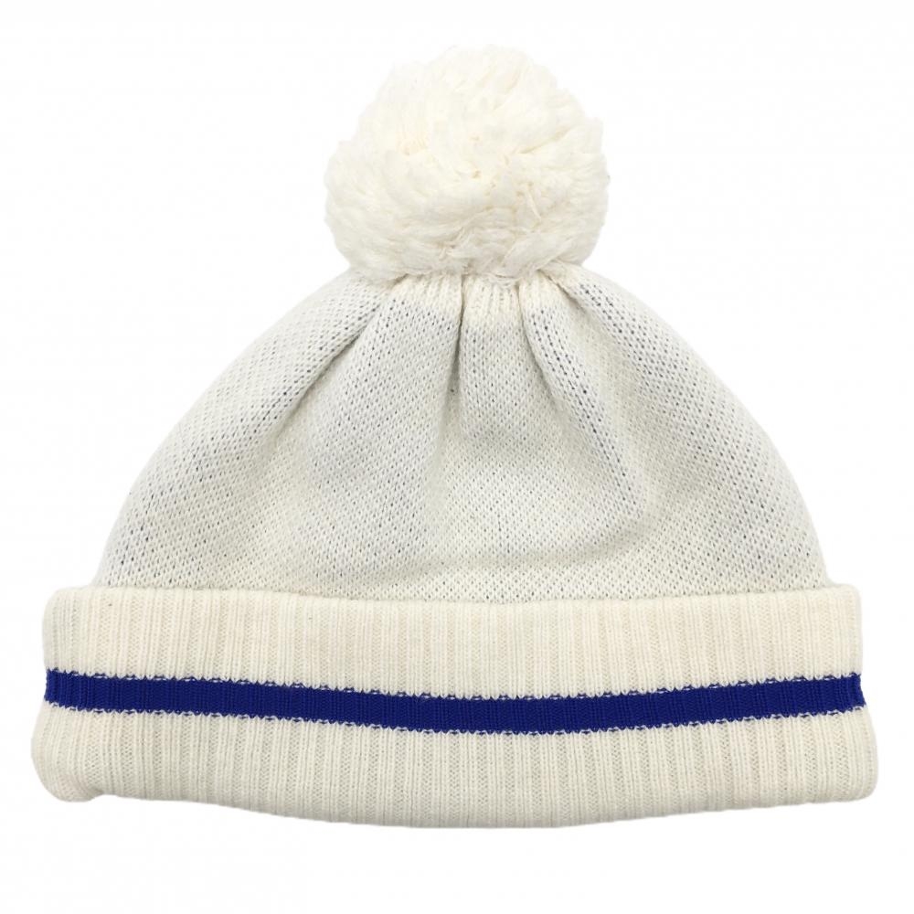 パーリーゲイツ ニット帽 白×ブルー ウール混 ボンボン付 FR ゴルフウェア PEARLY GATES
