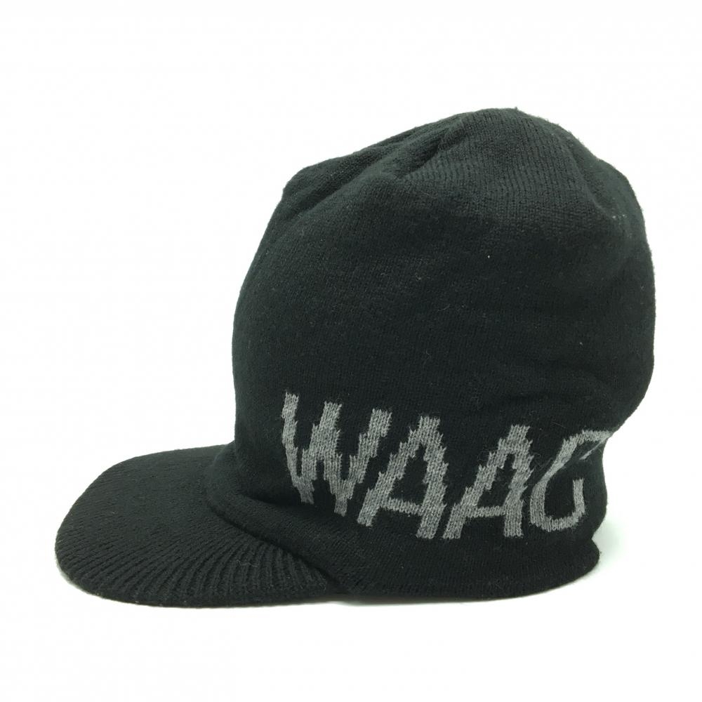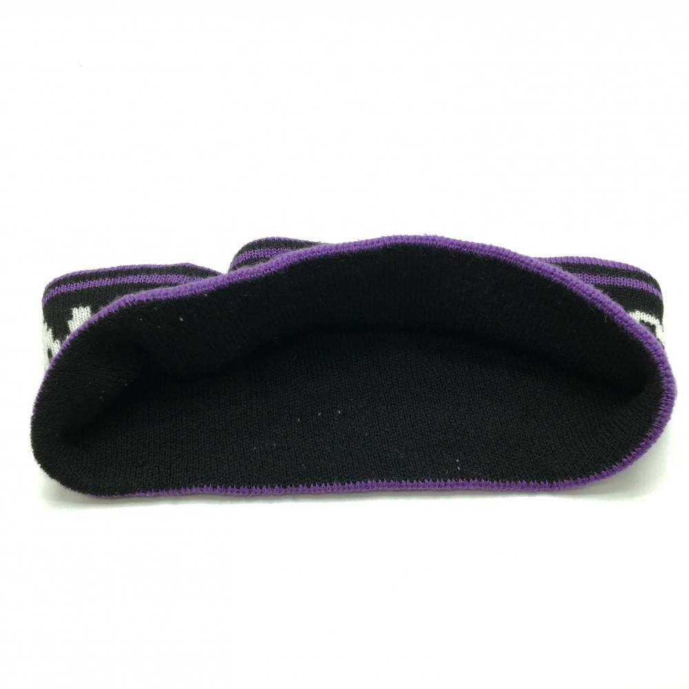 【美品】ワック 3WAYつば付ニット帽 黒×パープル ネックウォーマー付 羊毛混 1098 ゴルフウェア WAAC