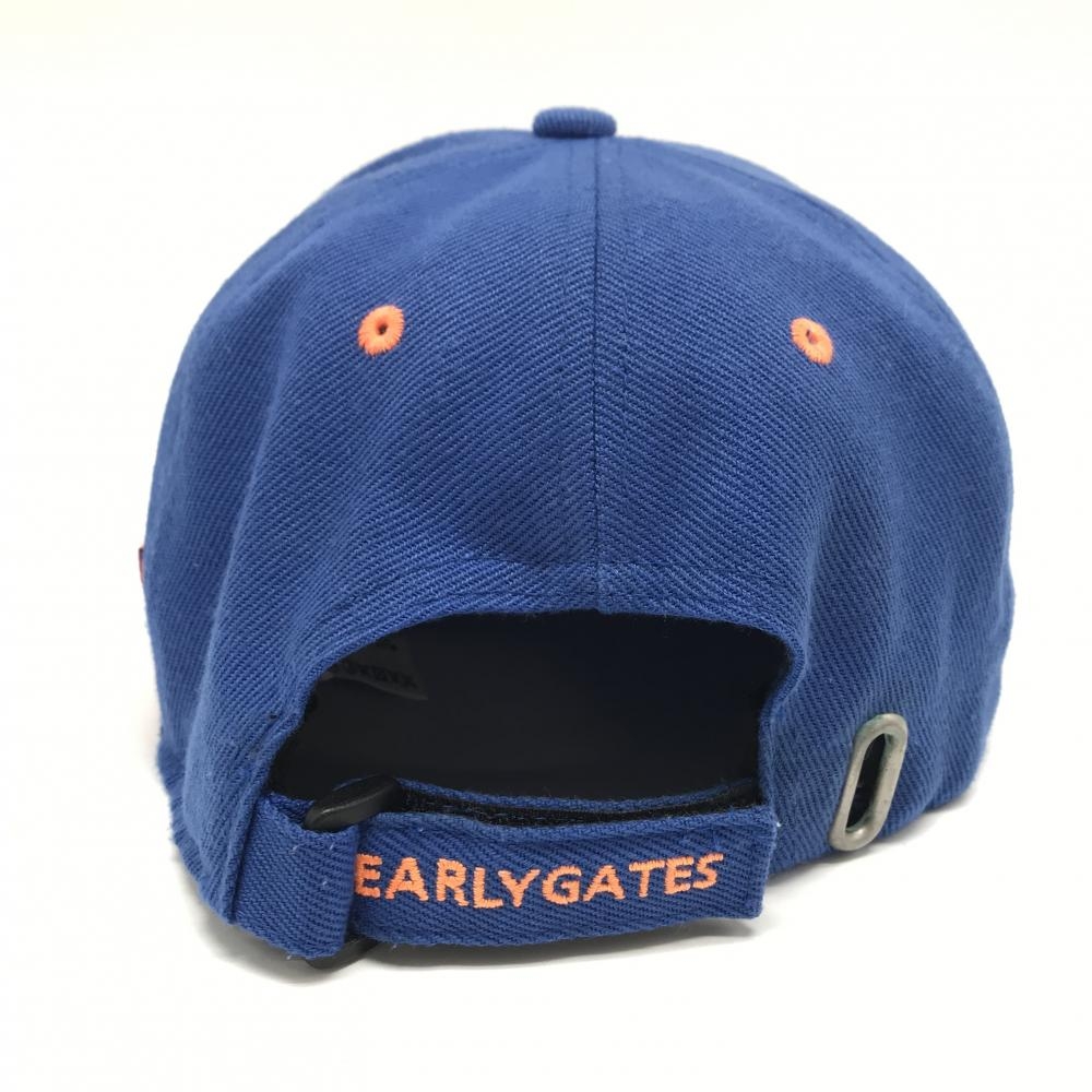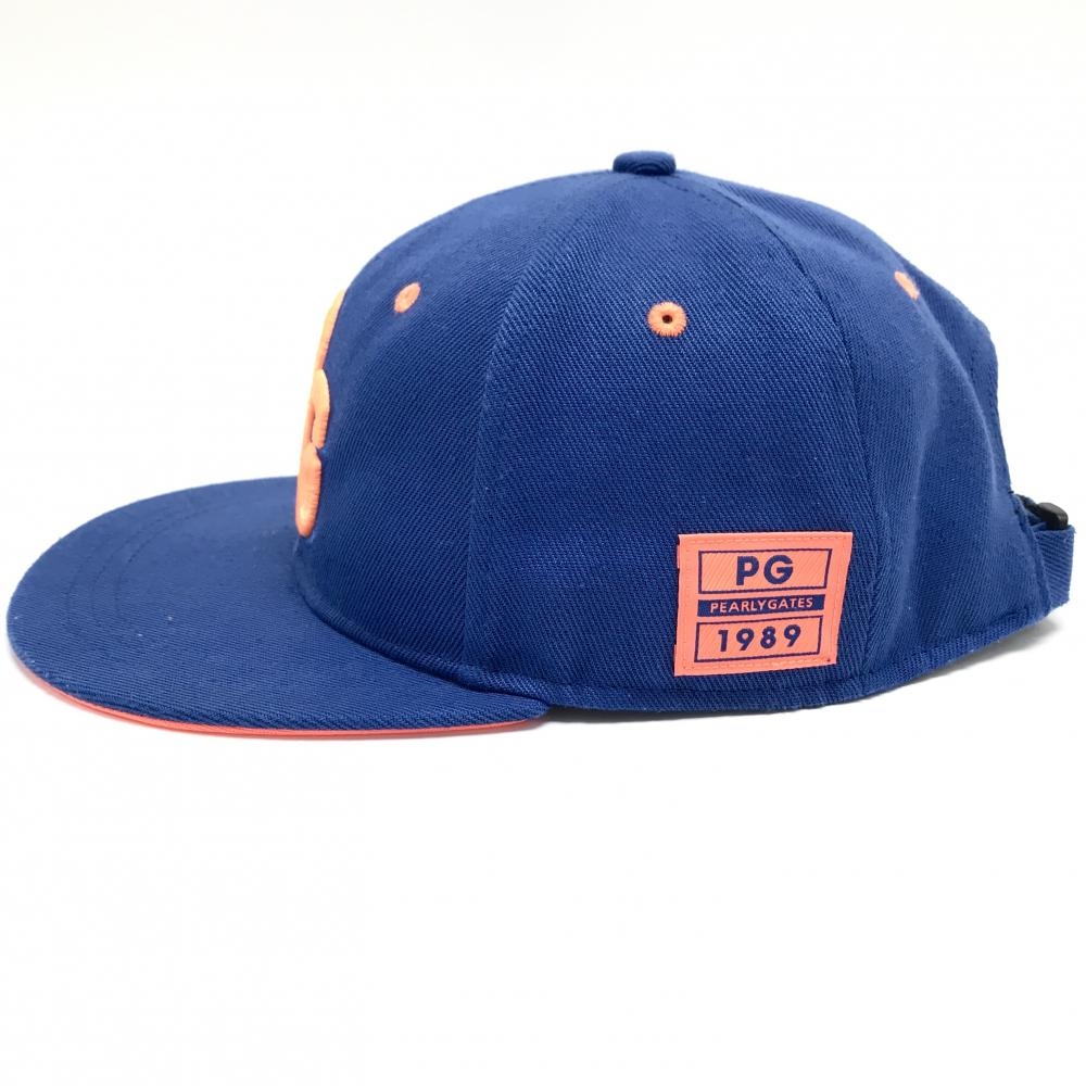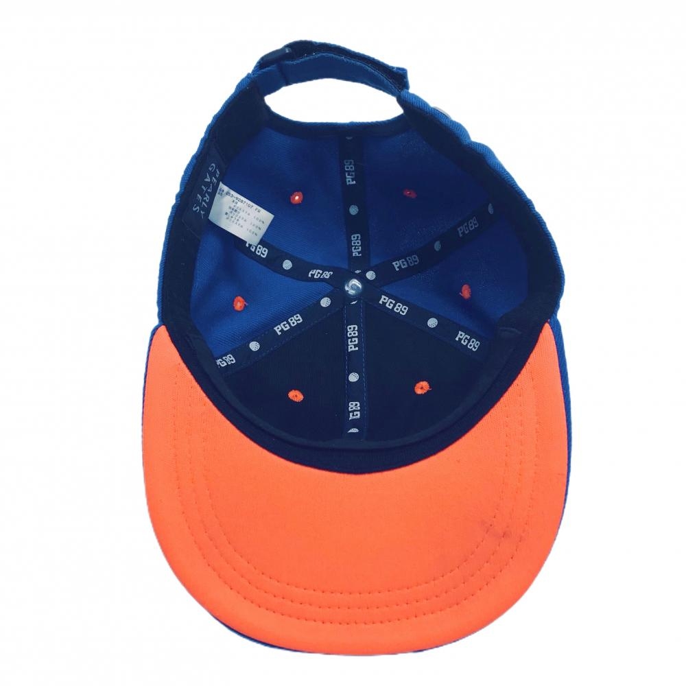【美品】パーリーゲイツ フラットキャップ ブルー×蛍光オレンジ 汗取りパッド付 立体ロゴ刺しゅう FR ゴルフウェア PEARLY GATES